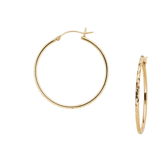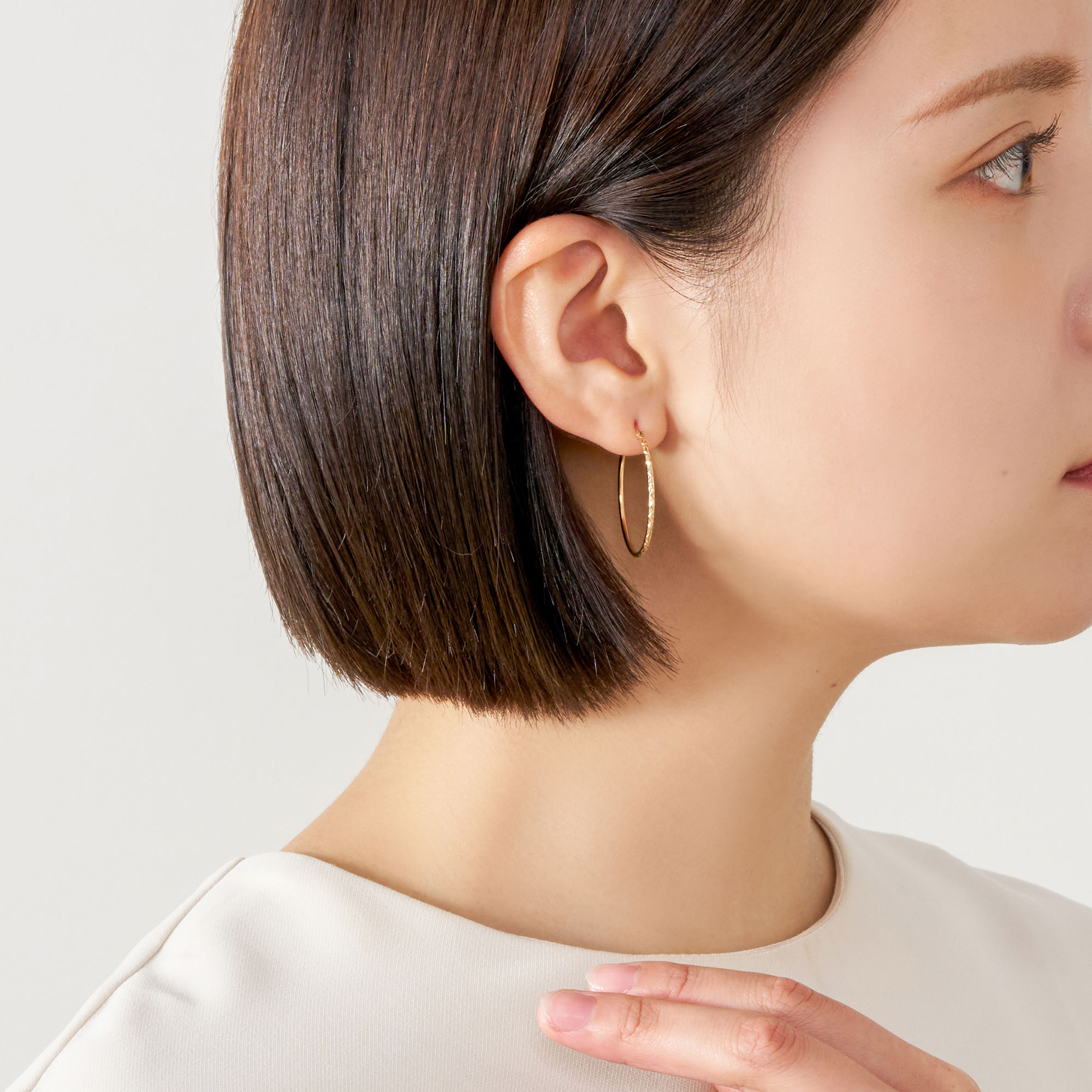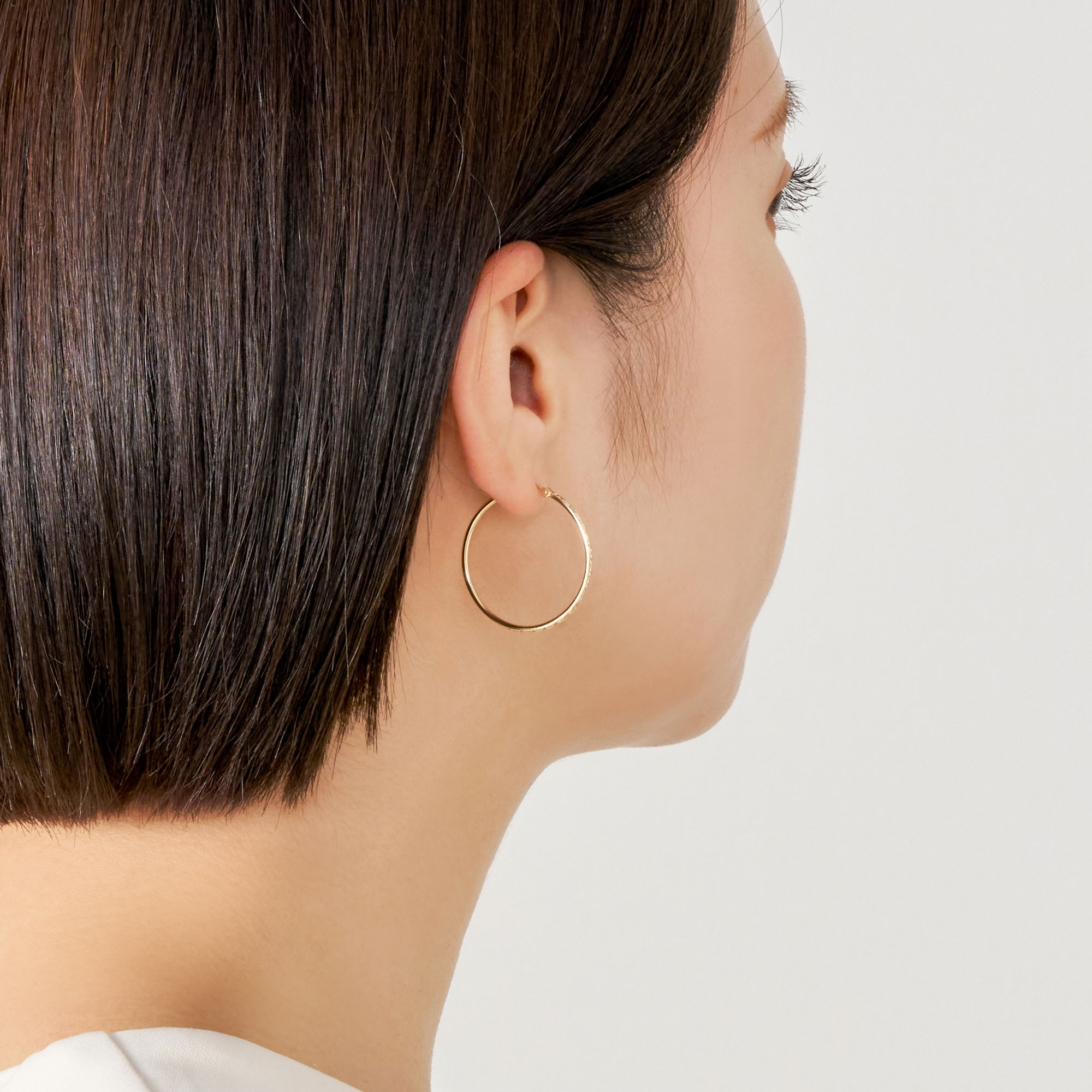 イエローゴールドの繊細な輝きを奏でるフープピアス。