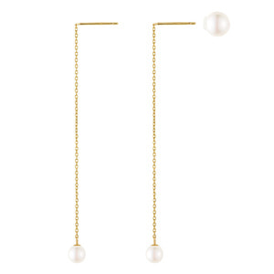 イエローゴールドのチェーンに淡水パールをあしらったチェーンピアス。