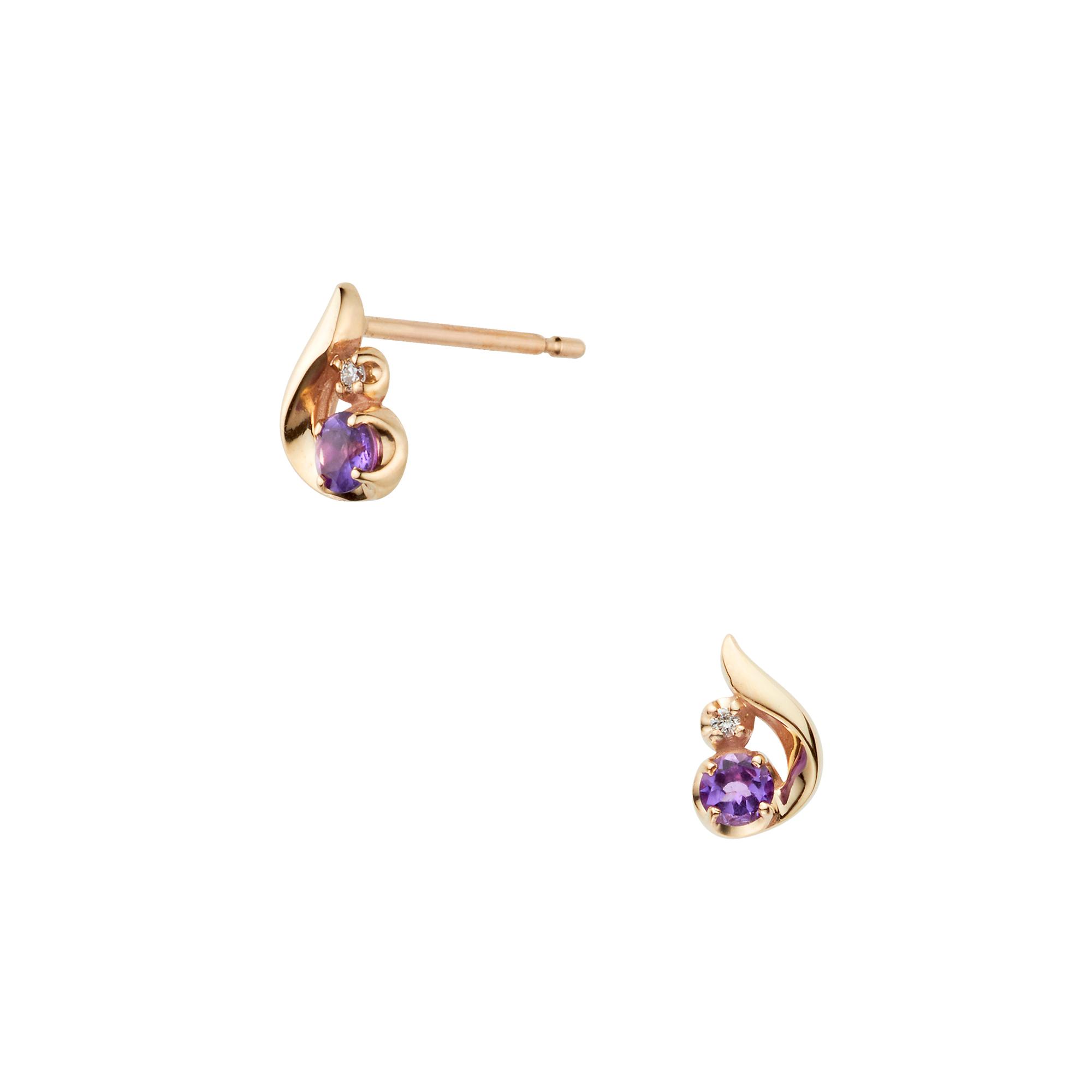 ふっくらとした地金と繊細に輝くダイヤモンドが神秘的なアメシストを引き立て、可愛らしくも上質な雰囲気に。