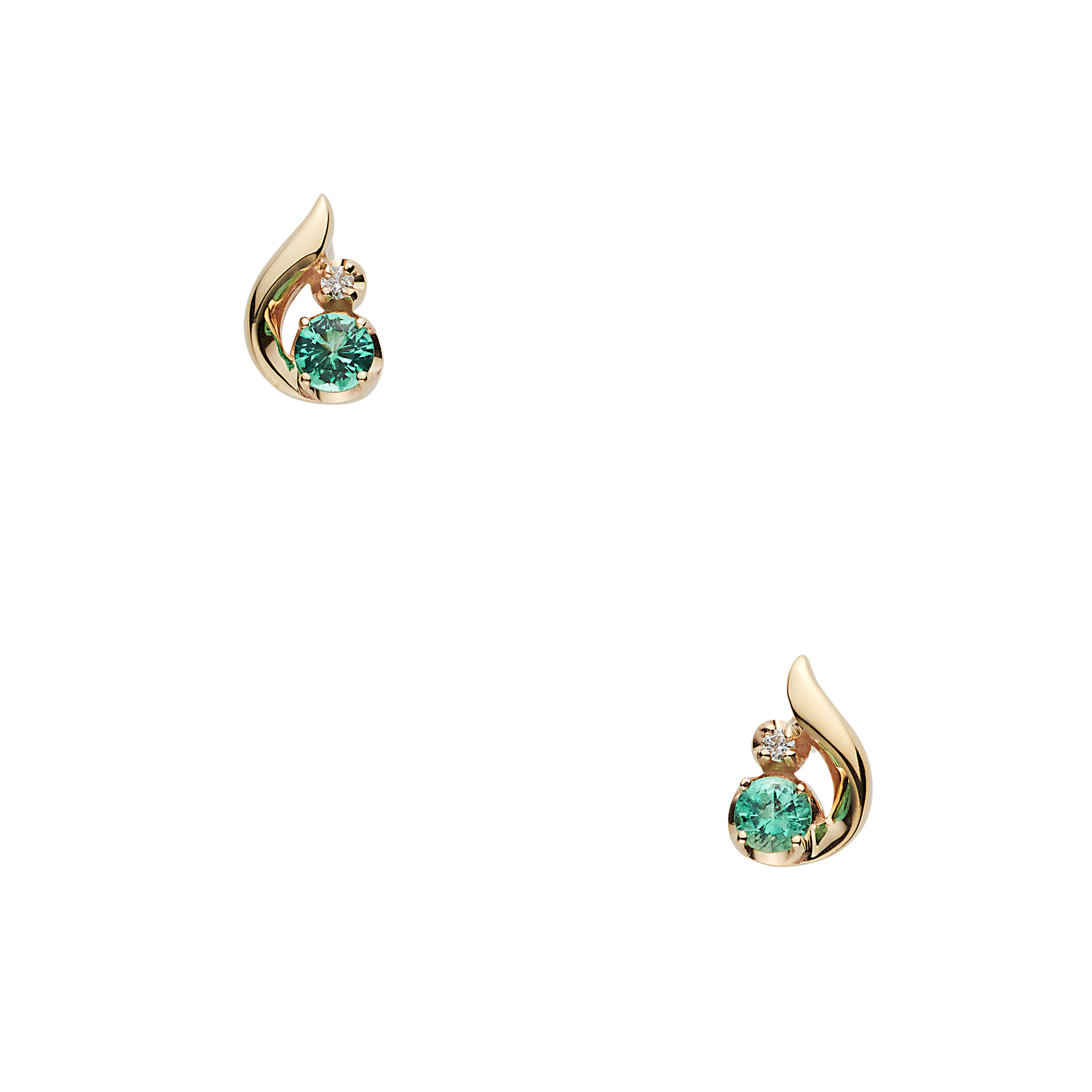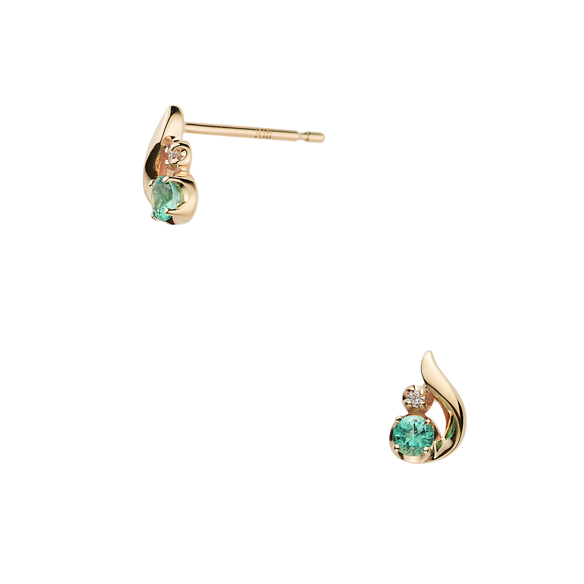 ふっくらとした地金と繊細に輝くダイヤモンドが鮮やかなエメラルドを引き立て、可愛らしくも上質な雰囲気に。