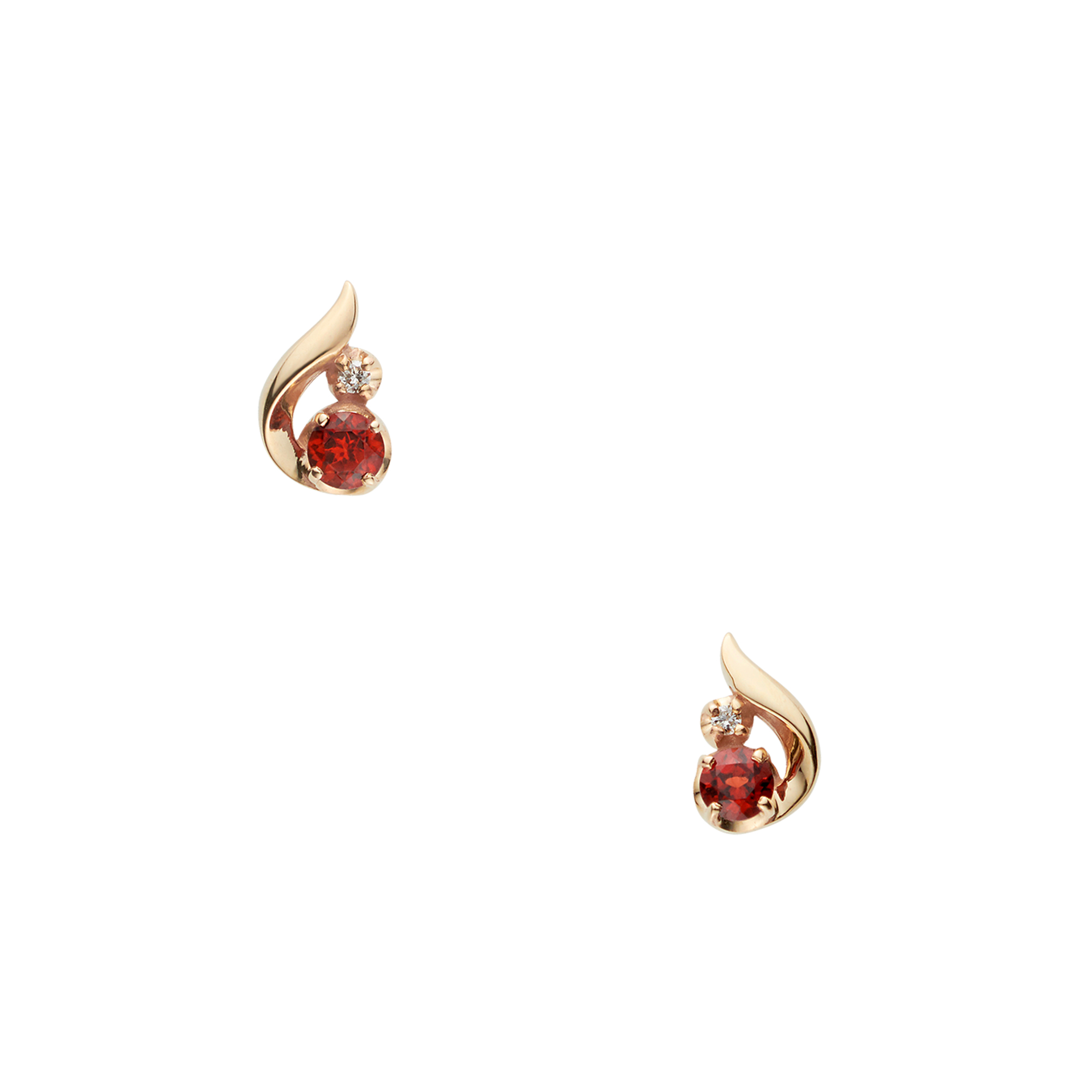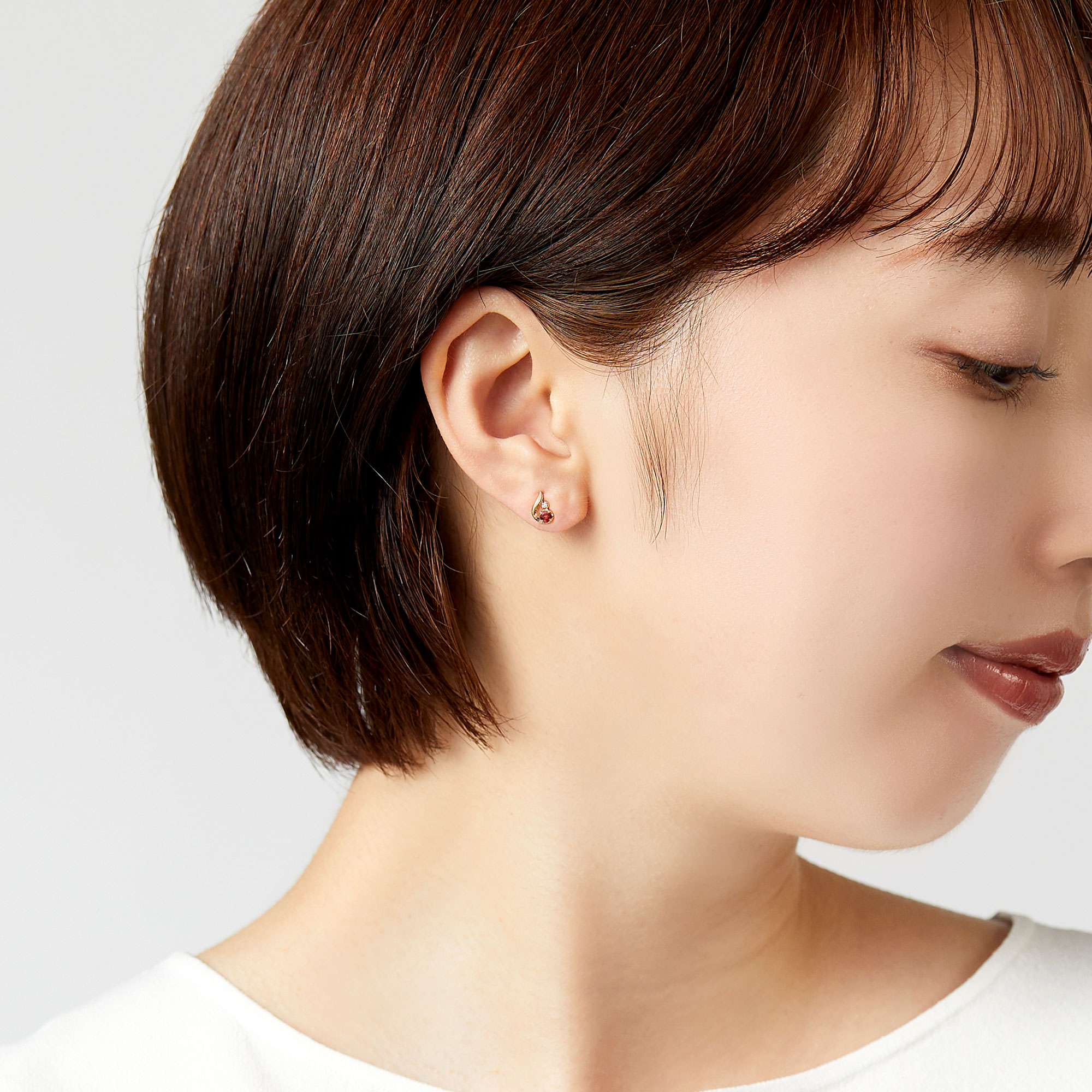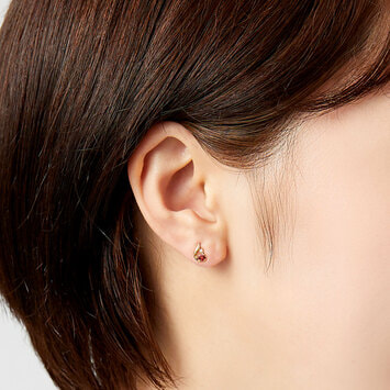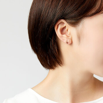 ふっくらとした地金と繊細に輝くダイヤモンドが深みのあるガーネットを引き立て、可愛らしくも上質な雰囲気に。