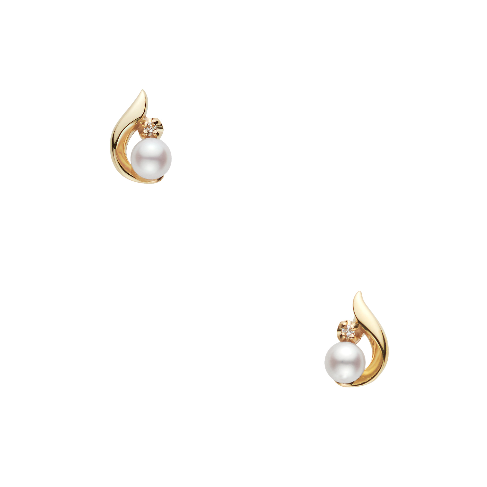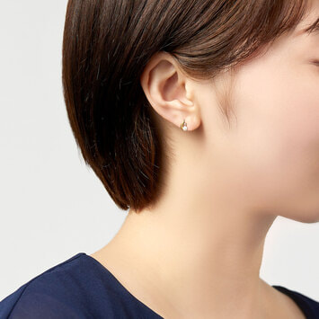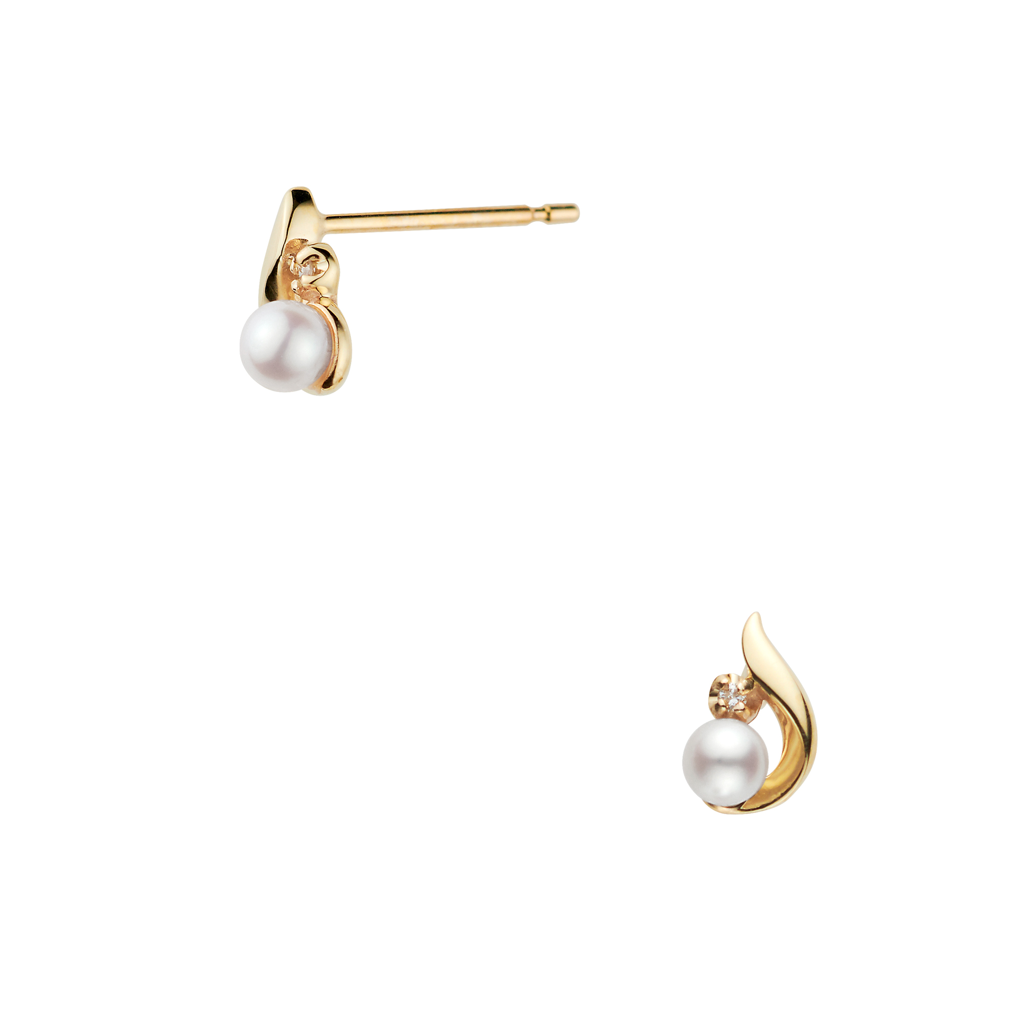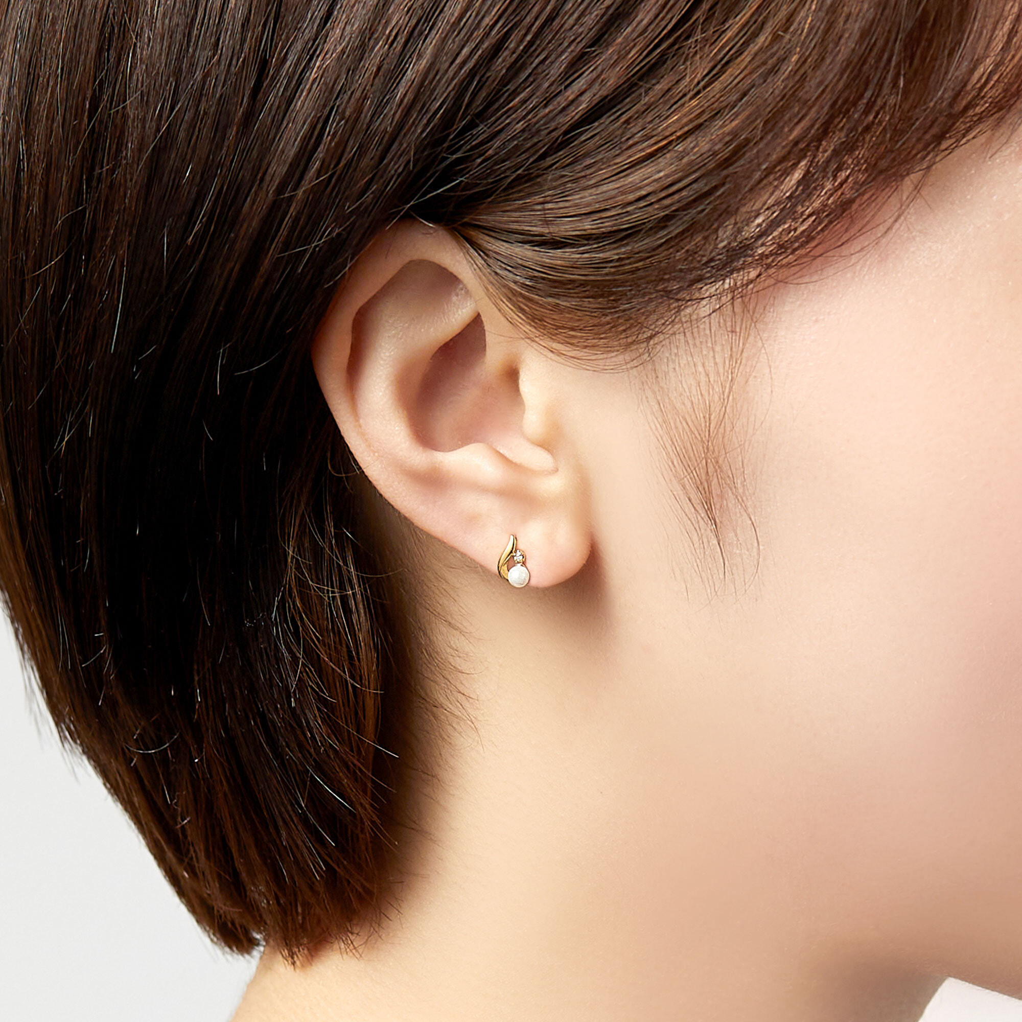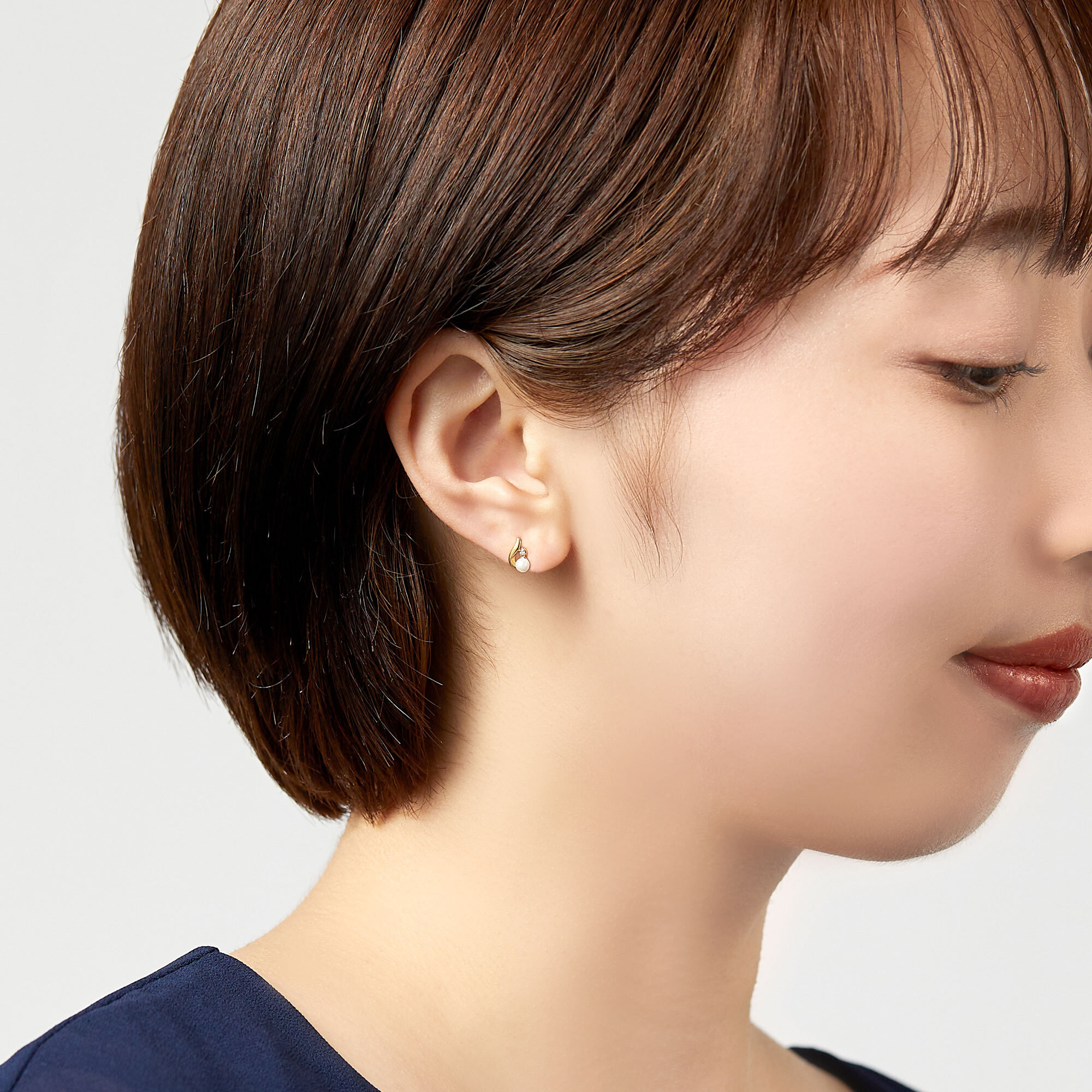 ふっくらとした地金と繊細に輝くダイヤモンドがまろやかなパールを引き立て、可愛らしくも上質な雰囲気に。