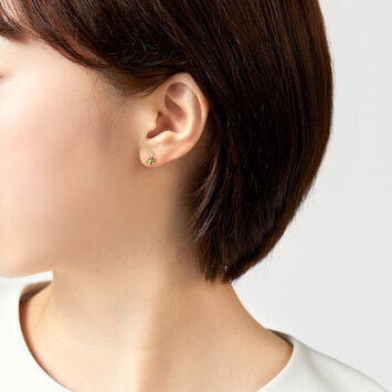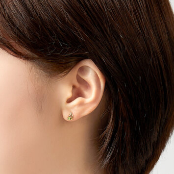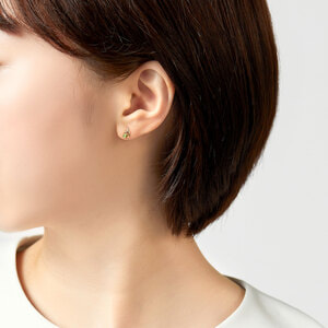 ふっくらとした地金と繊細に輝くダイヤモンドが瑞々しいペリドットを引き立て、可愛らしくも上質な雰囲気に。