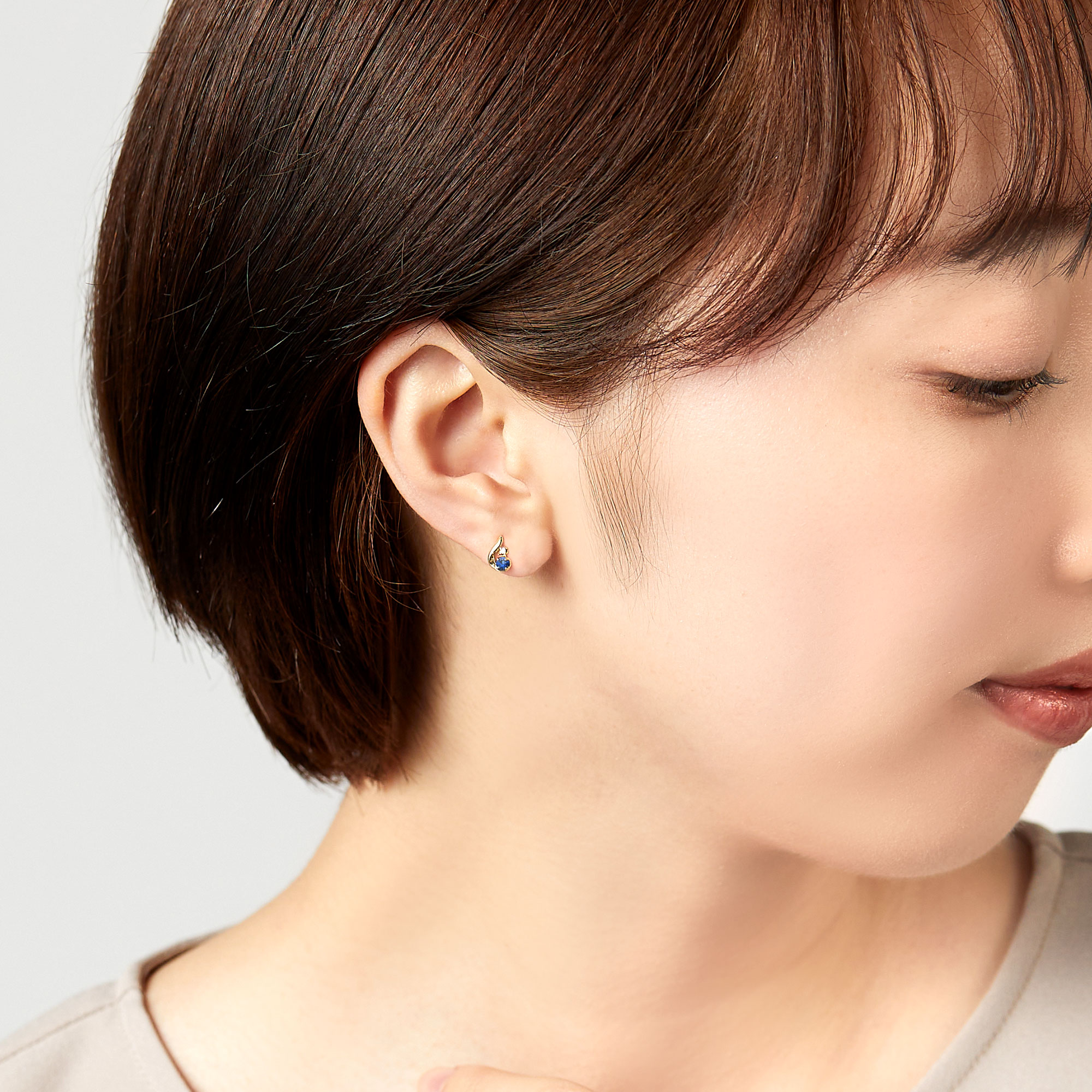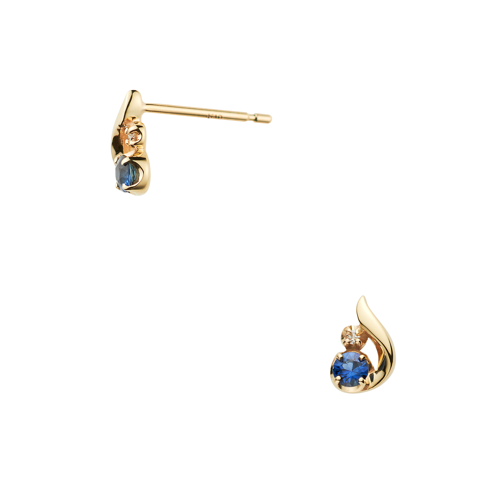 ふっくらとした地金と繊細に輝くダイヤモンドが鮮やかなサファイアを引き立て、可愛らしくも上質な雰囲気に。