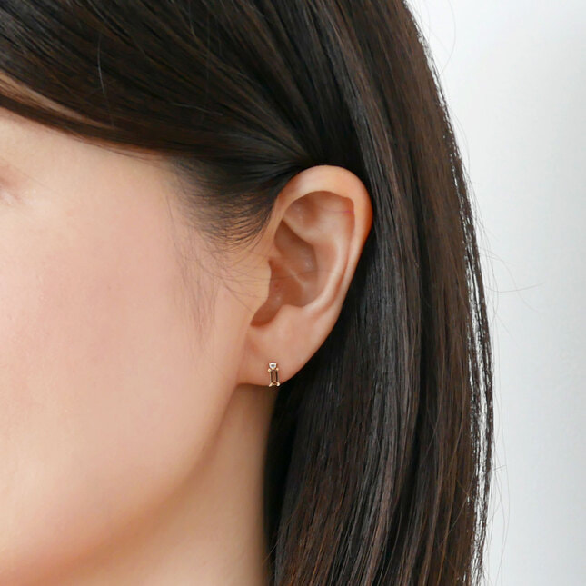 バケットカットを施したスモーキークォーツが印象的なピアス。