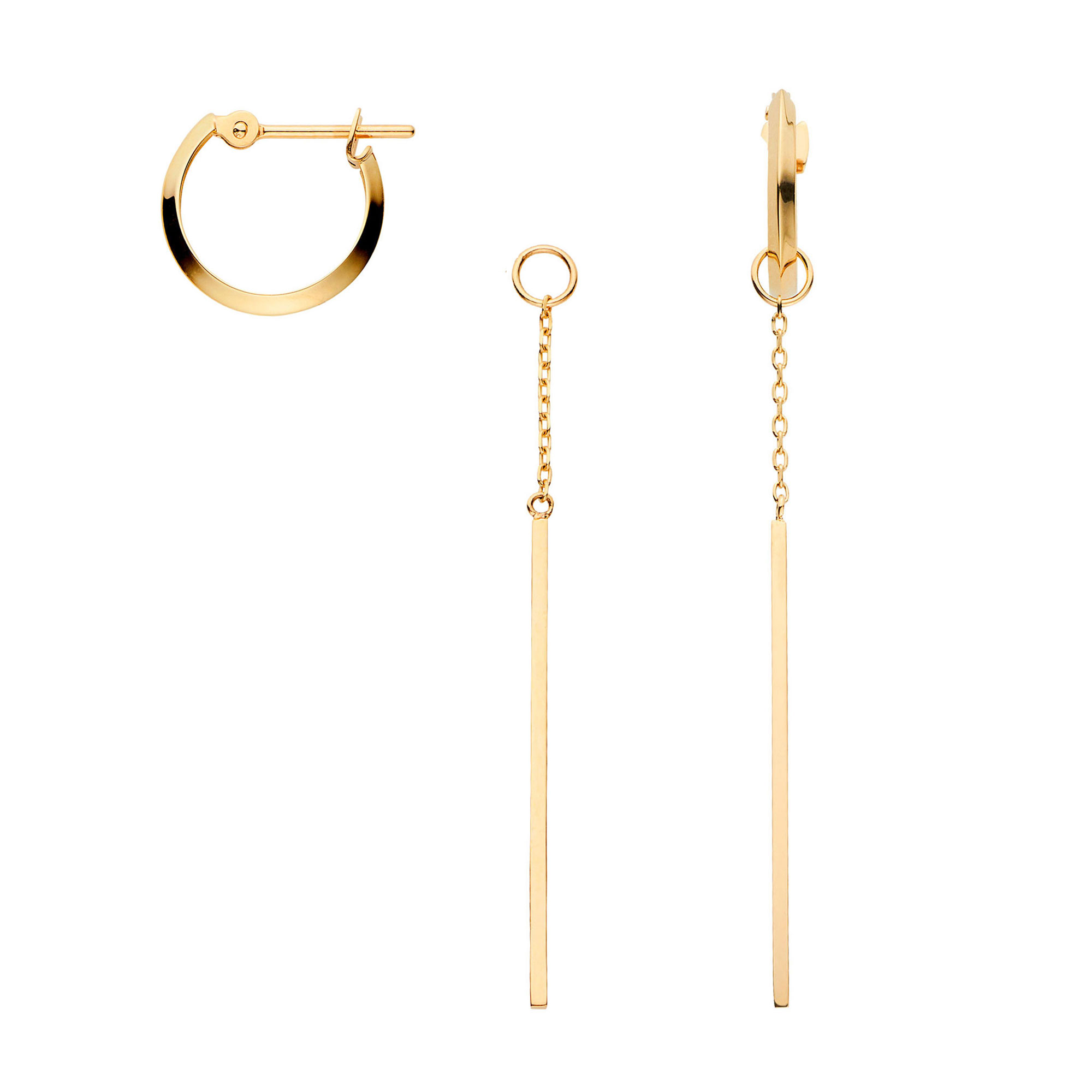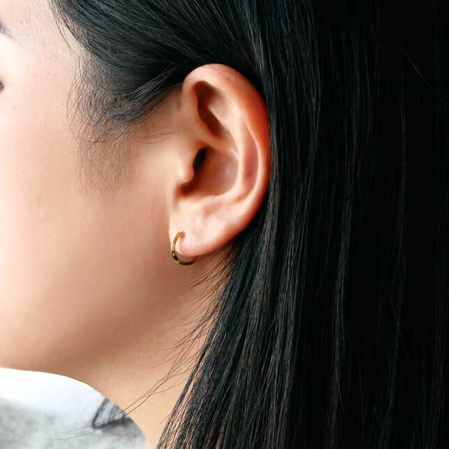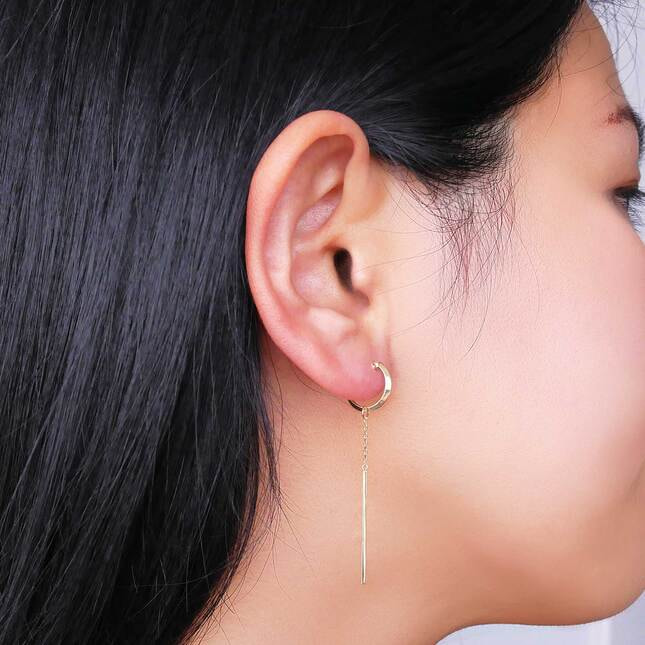 バーは取り外しができ、ベーシックにフープだけで楽しんだり、お手持ちのピアスにバーを下げたりと、コーディネートに合わせて色々なアレンジを楽しめる2WAYタイプ。