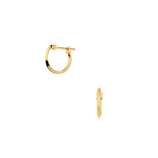 シンプルながら程よいエッジが効いたフープが、モダンな雰囲気を醸し出し、フープとバーのコンビネーションが上品に映えるスウィングピアス。