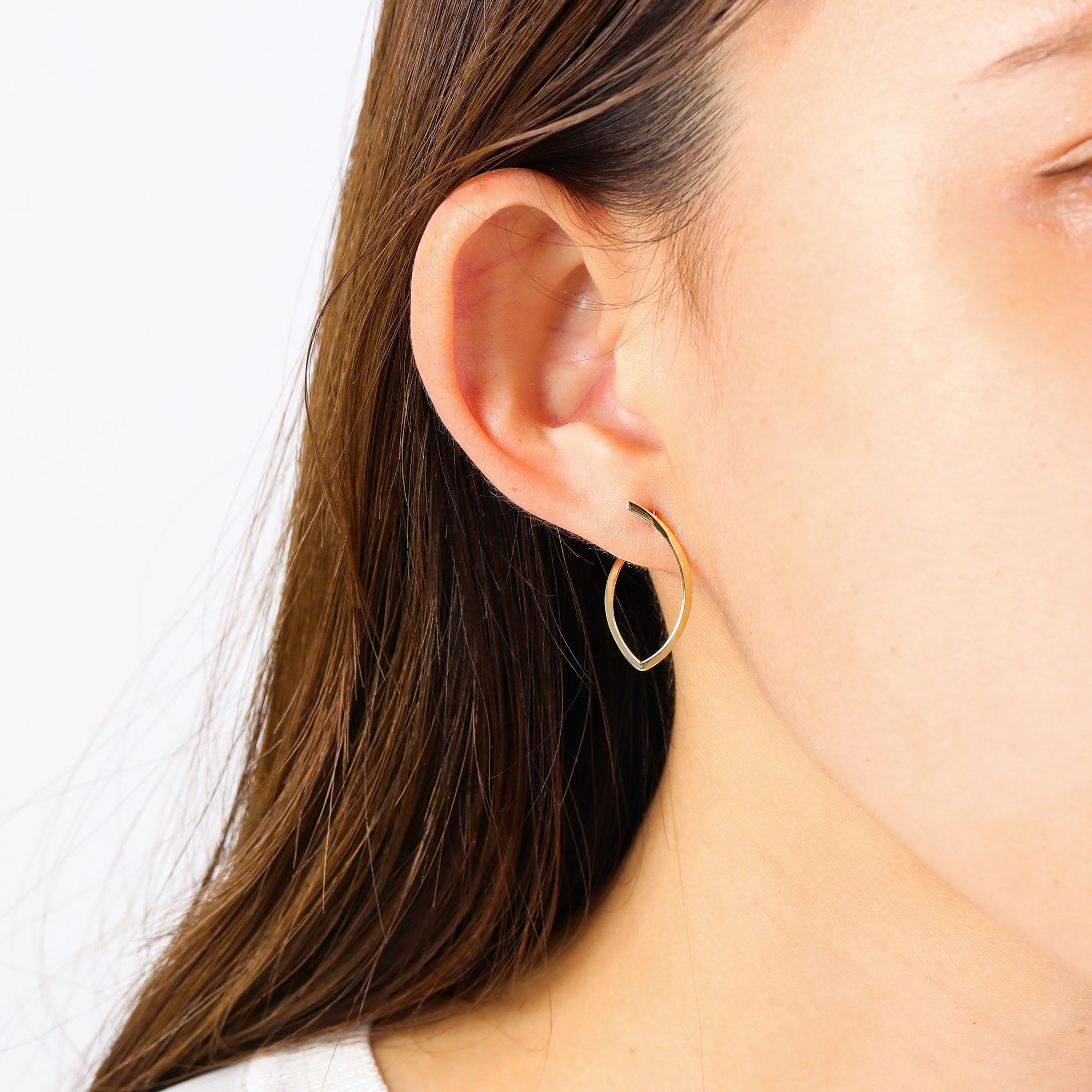 アーモンド型のシルエットがすっきりと大人っぽい雰囲気のピアス。