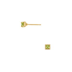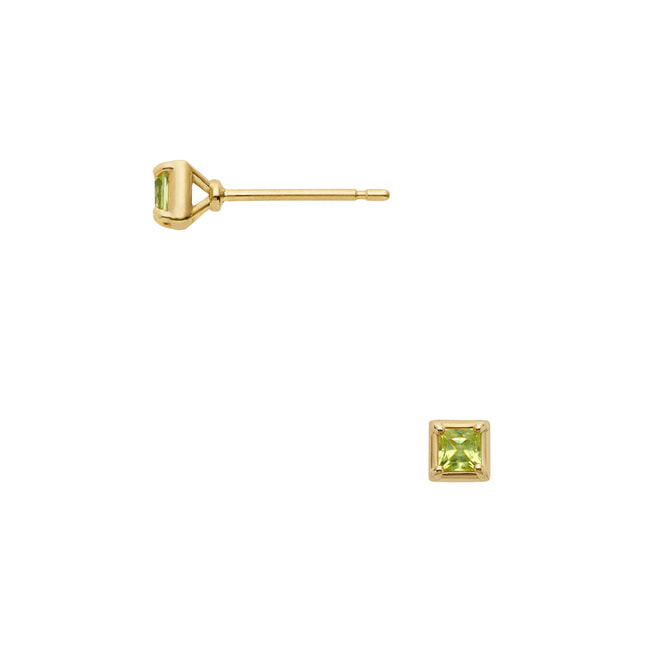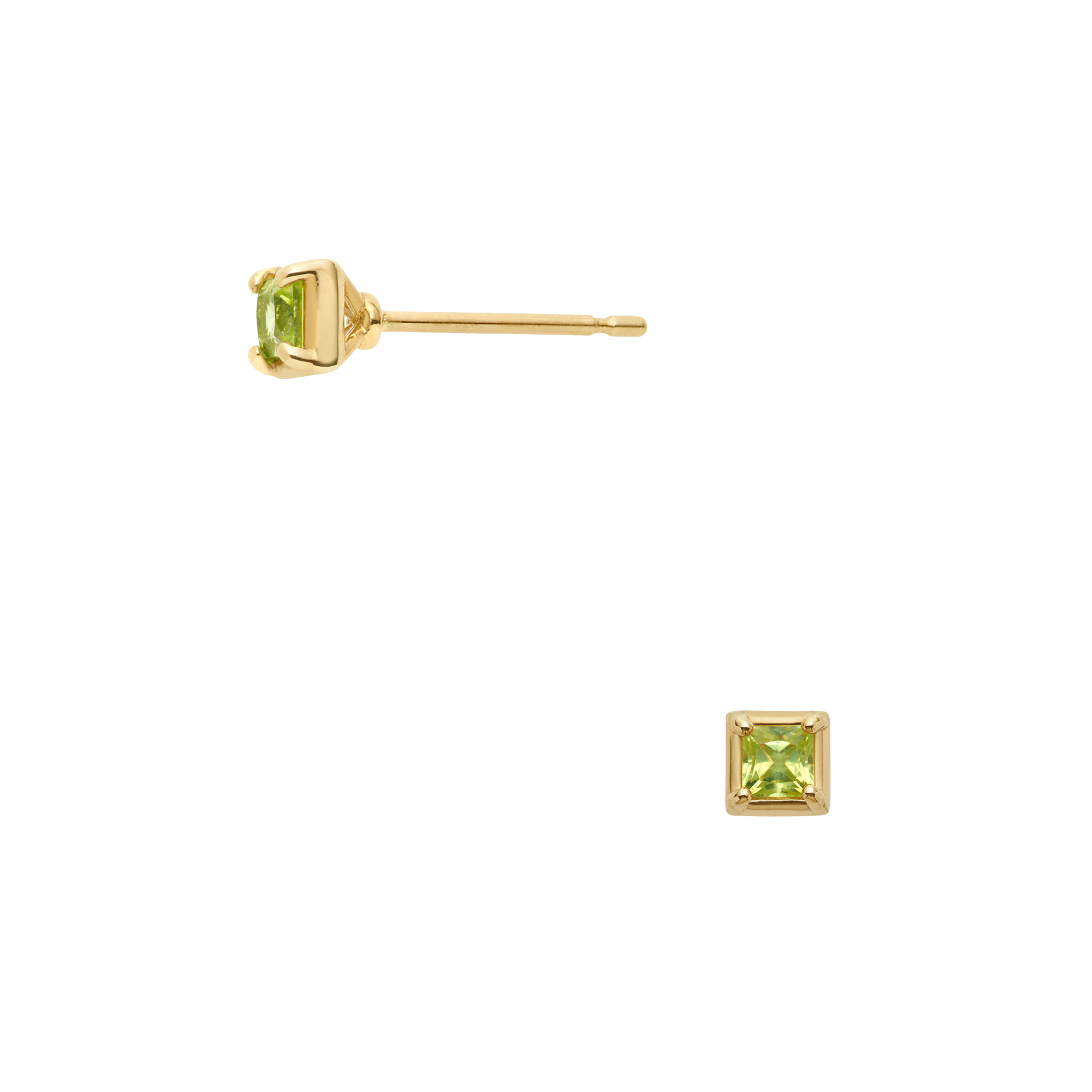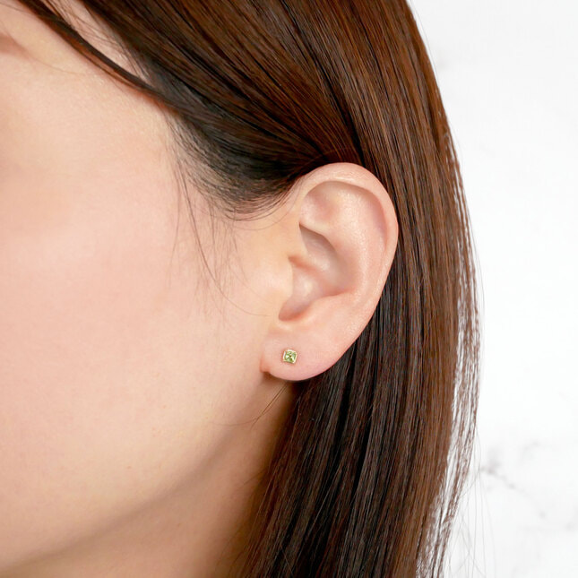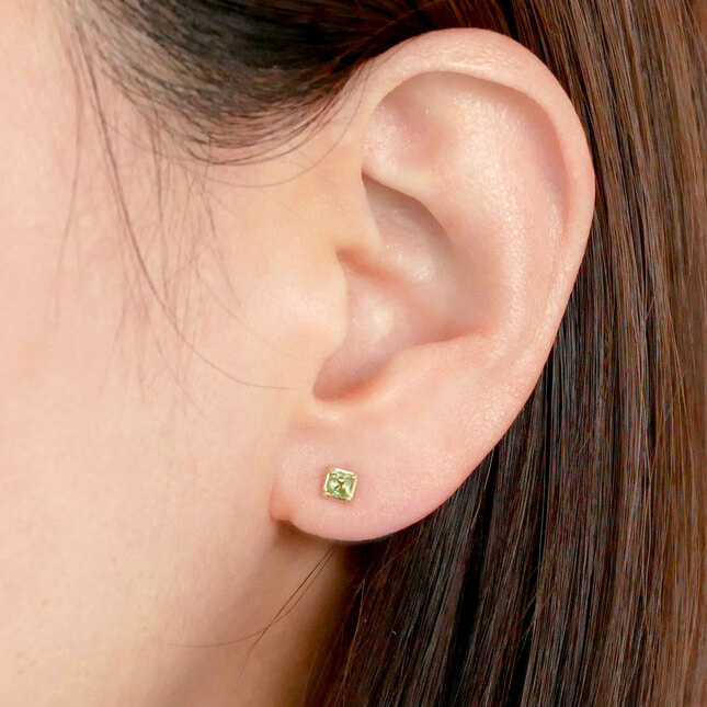 プリンセスカットのペリドットを、シンプルにアレンジしたピアス。