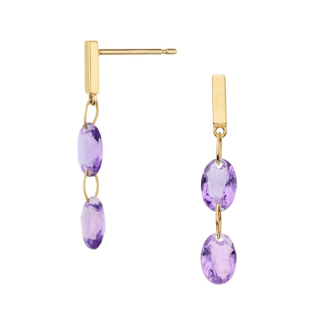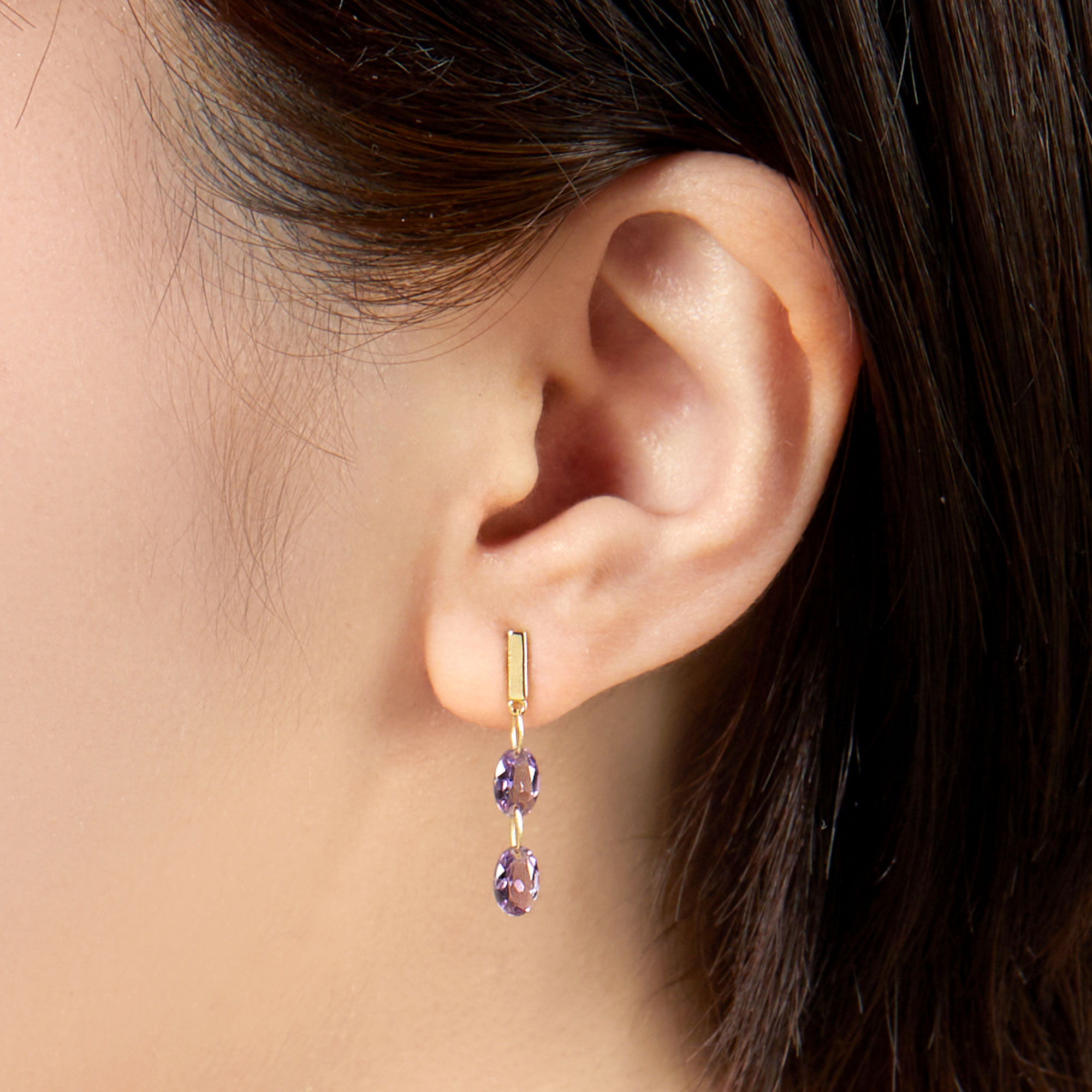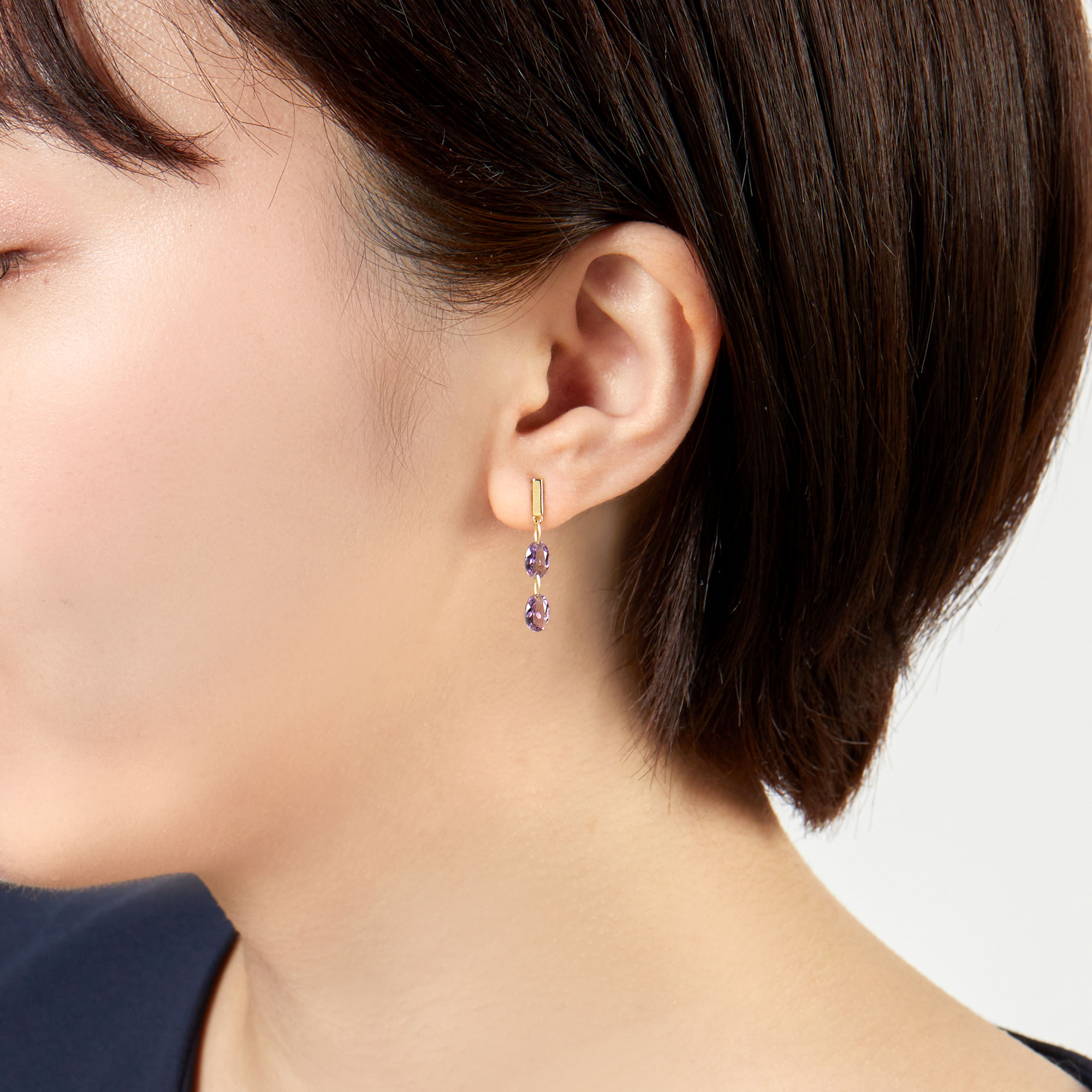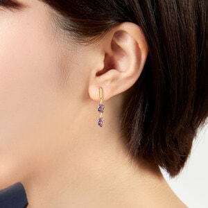 みずみずしいパープルのアメシストが耳元で揺れるピアス。