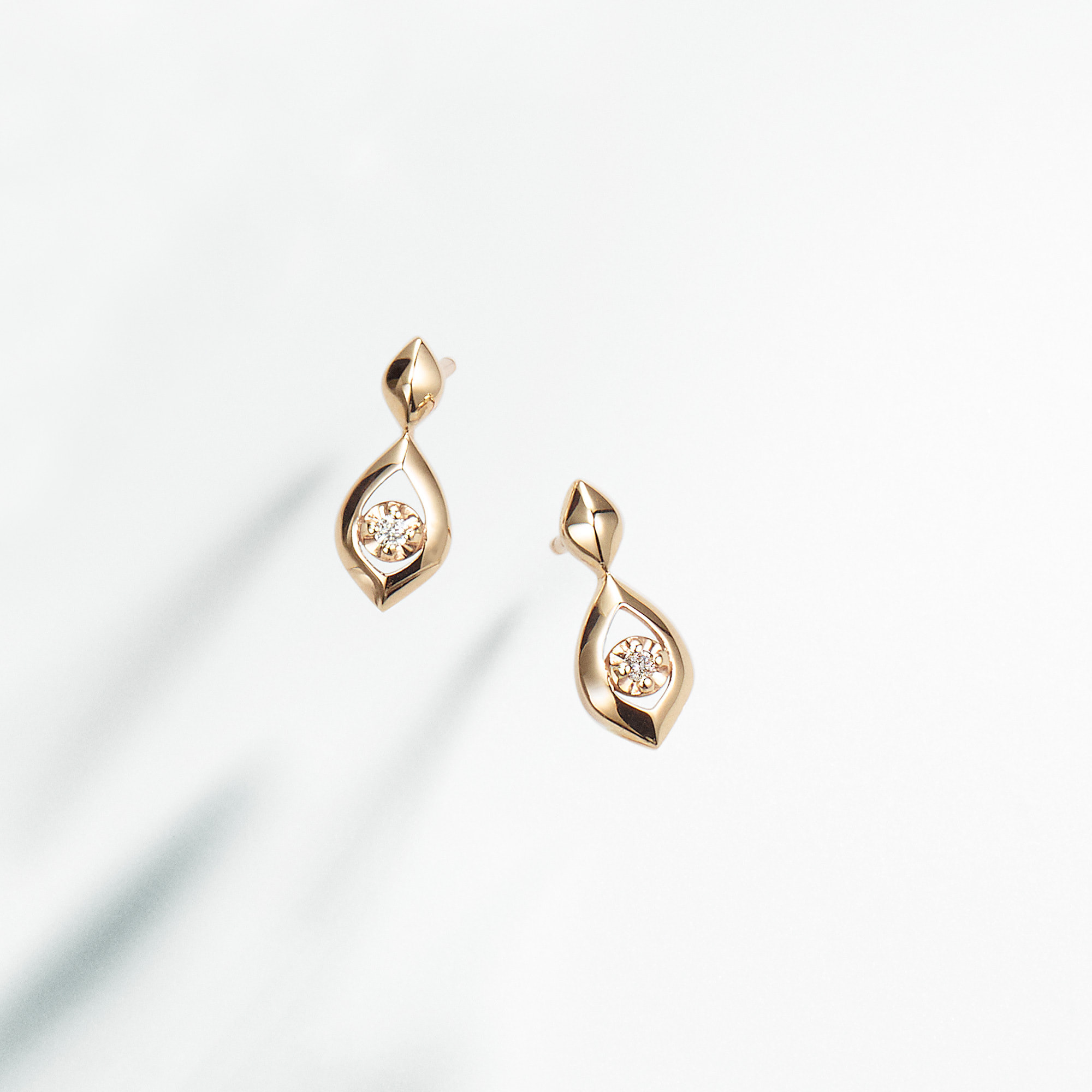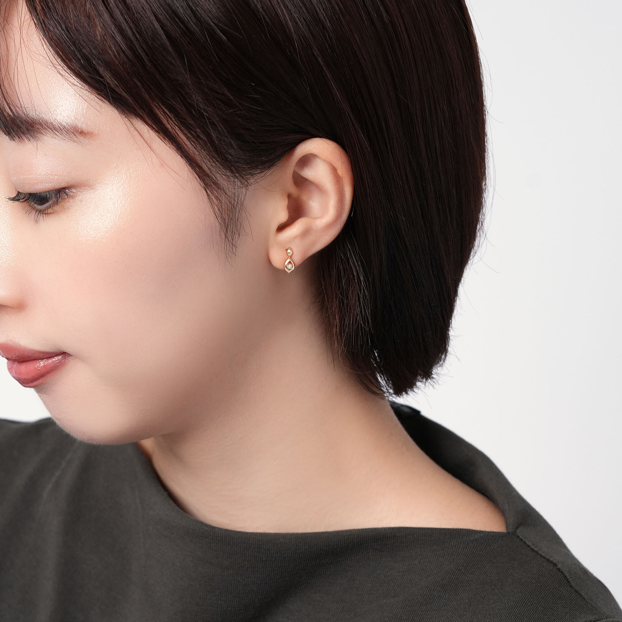 ふっくら艶やかに磨かれたゴールドが柔らかな陰影を生み出すピアスは、都会の喧騒から離れ、木漏れ日の中を散歩しているようなリラックスしたひと時を思い起こさせてくれそうです。