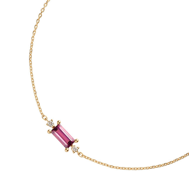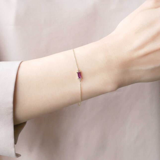 バゲットカットのガーネットの透明感が印象的なブレスレット。