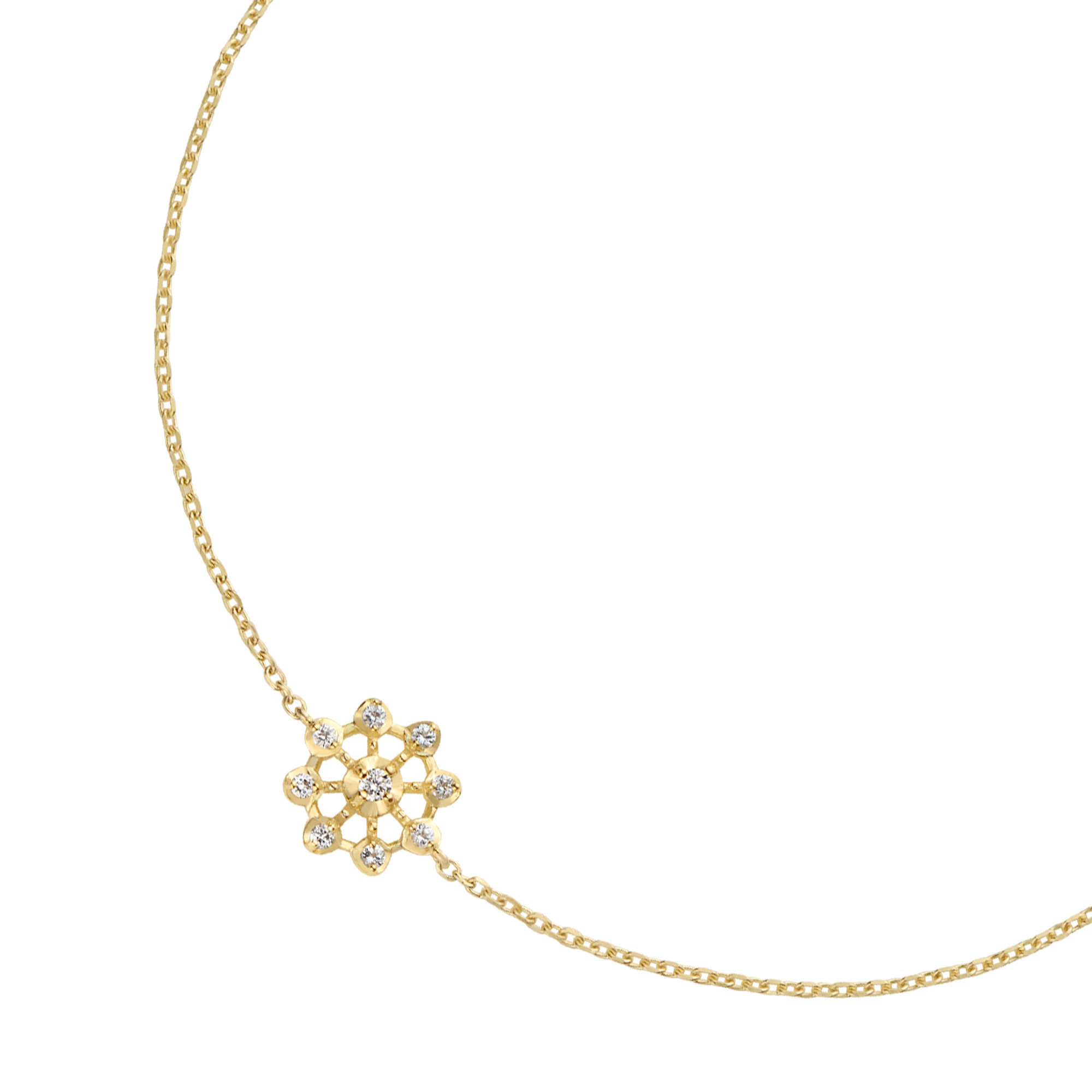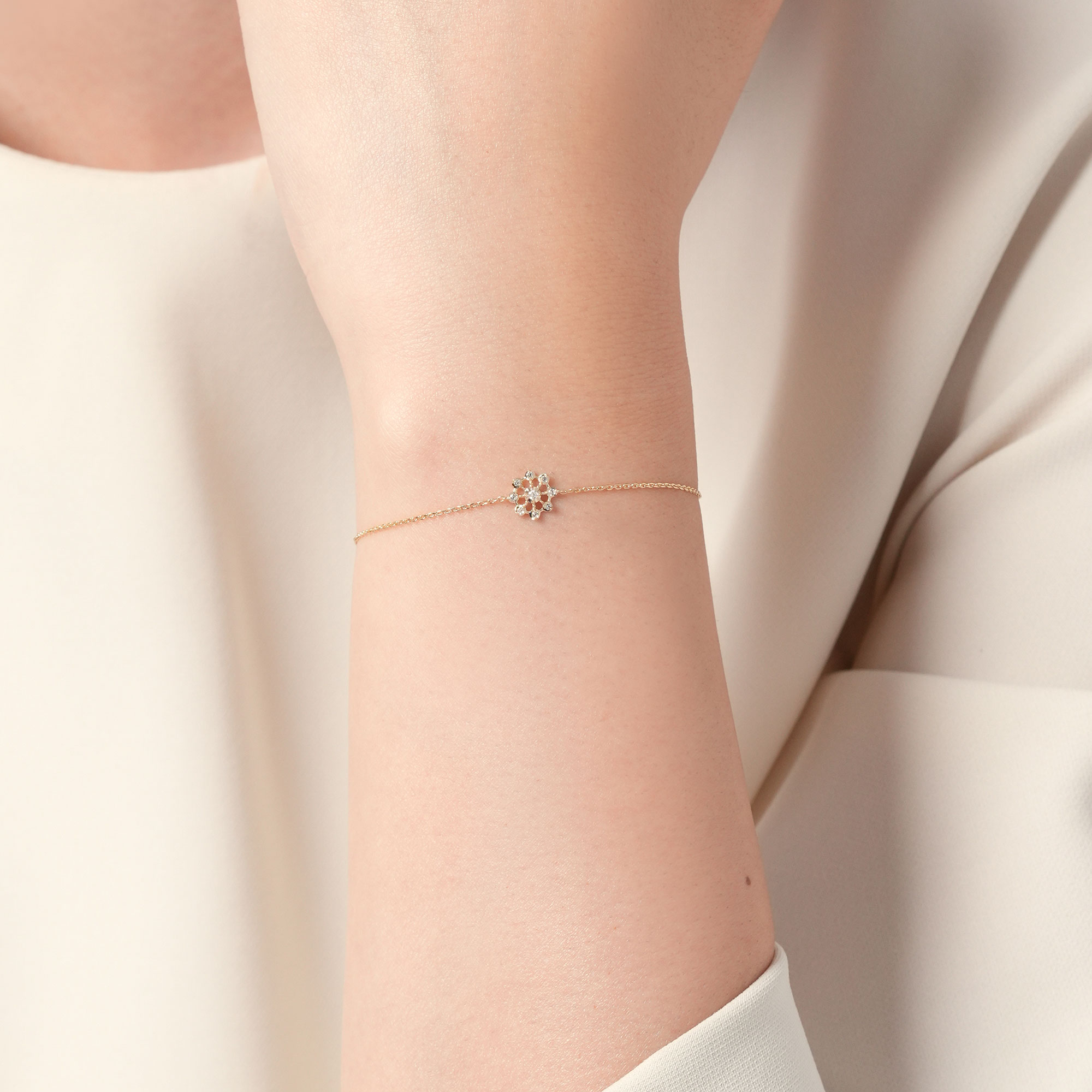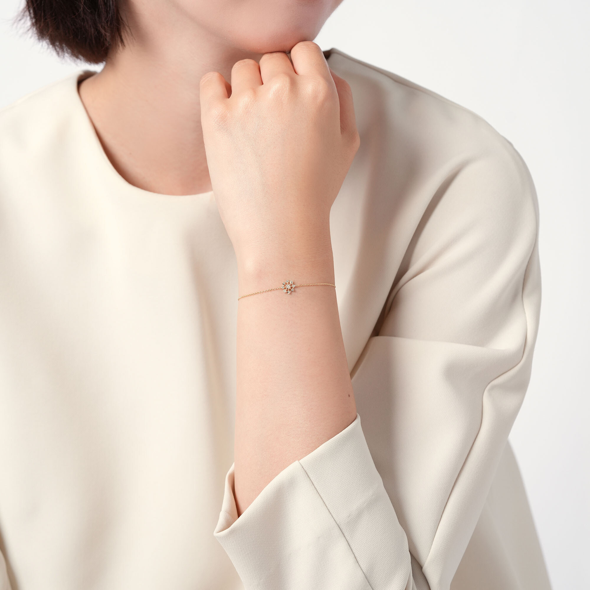 ダイヤモンドを取り巻くようにホワイトトパーズがきらめきを添えるブレスレット。
