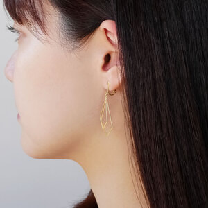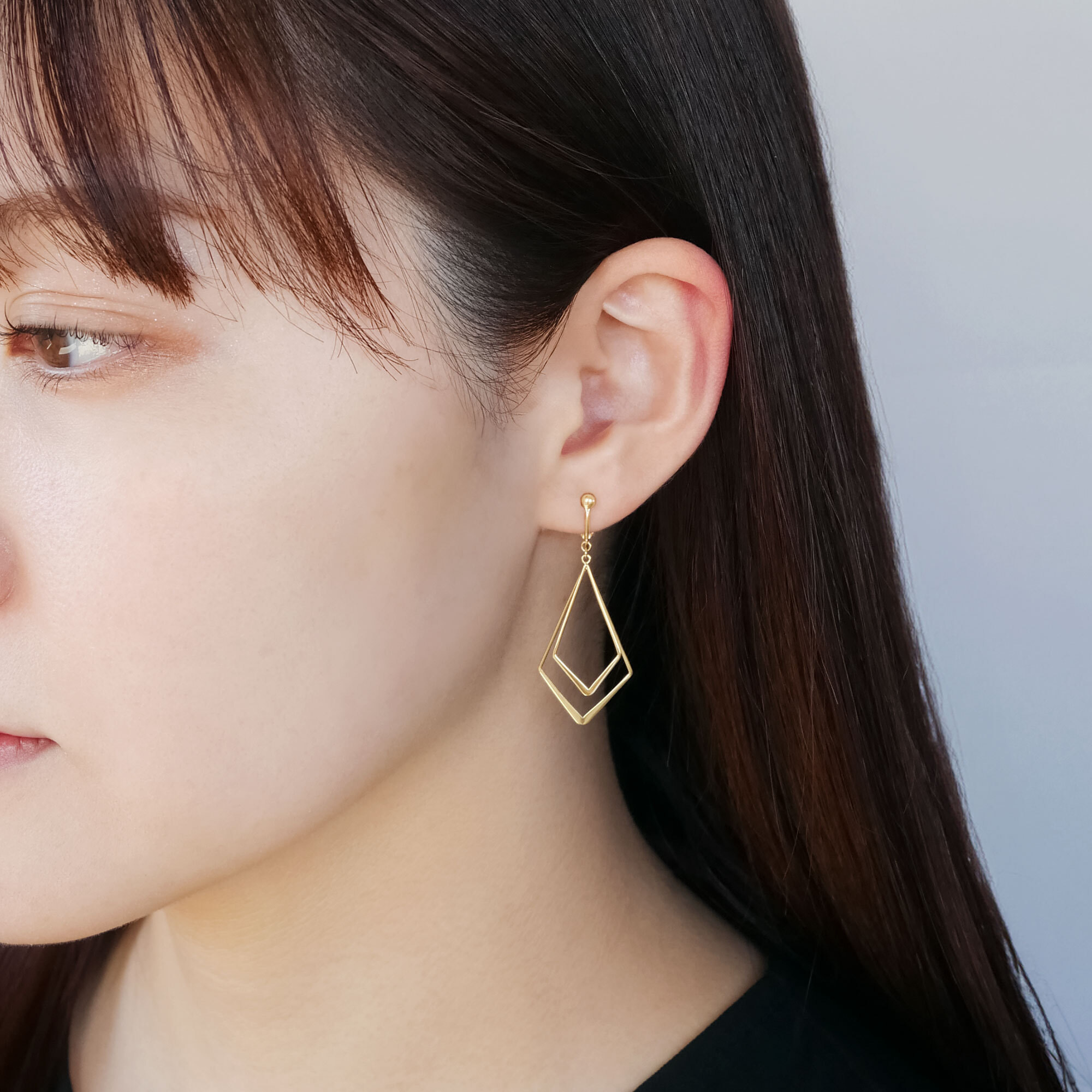 イエローゴールドの光沢と重なりあうひし形のモチーフで存在感のあるイヤリング。