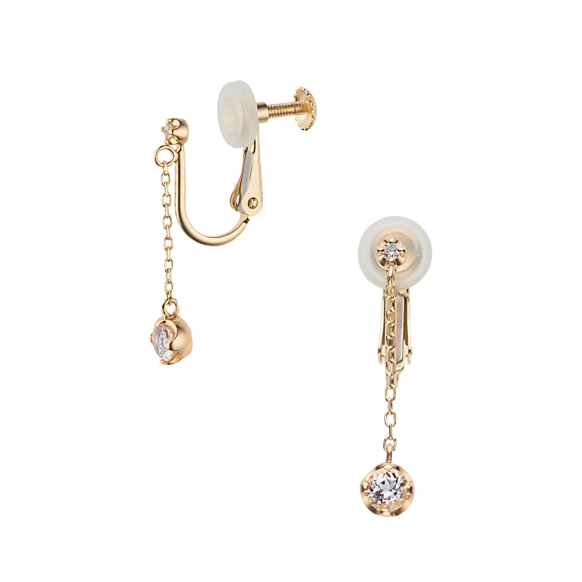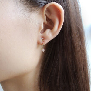 トップに輝くダイヤモンドが耳元に華やぎをプラス。
