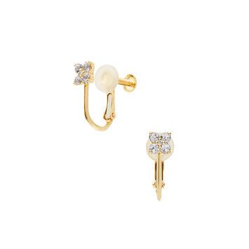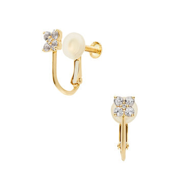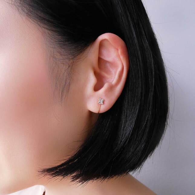 瑞々しい花びらを、うるうると輝くホワイトトパーズの透明感で表現した、フェミニンで柔らかい表情のイヤリング。