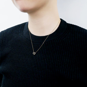 イエローゴールドとダイヤモンドで象られた三日月モチーフのネックレス。
