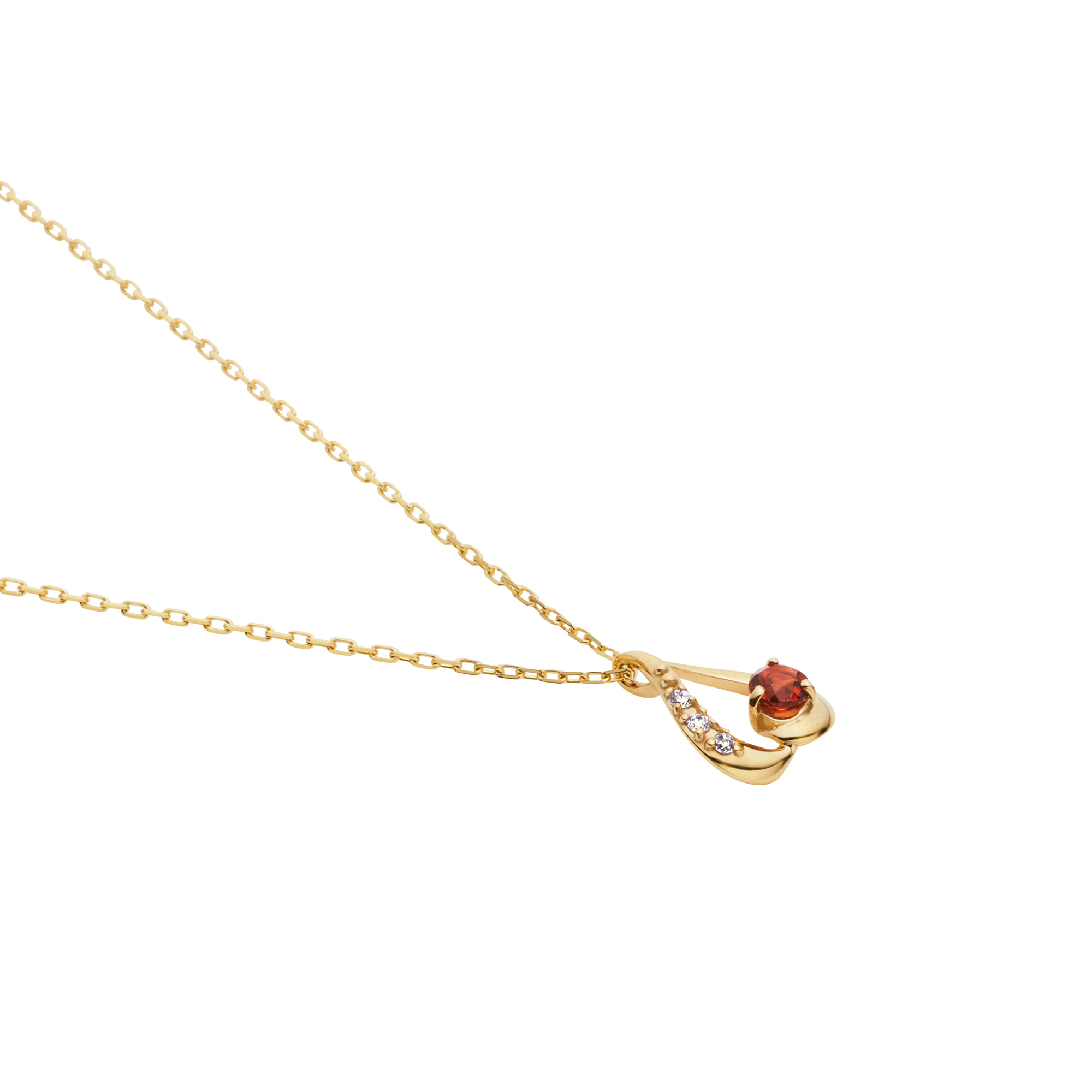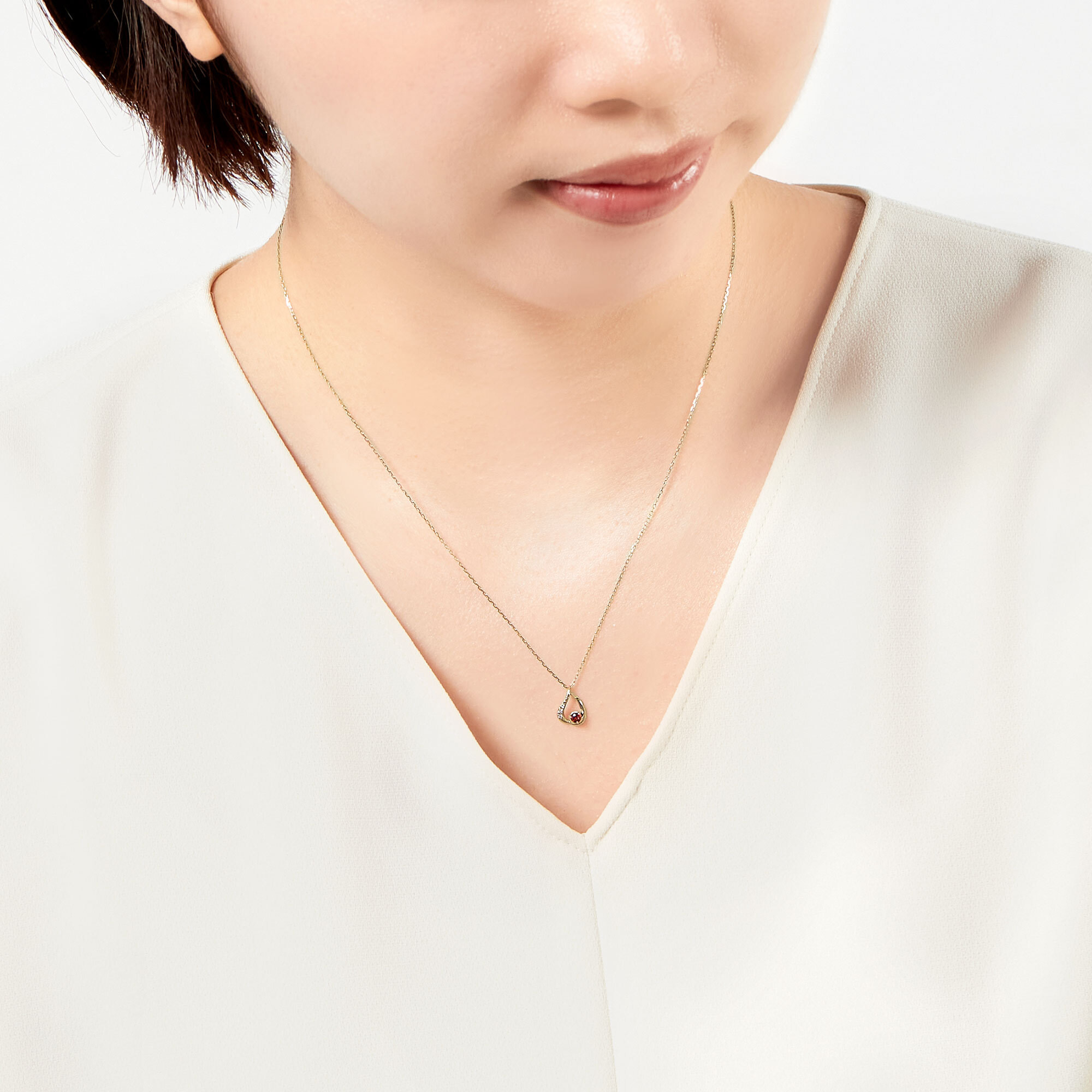 艶やかなイエローゴールドで描かれたドロップモチーフにさり気無くメレダイヤが輝くカラーストーンネックレス。