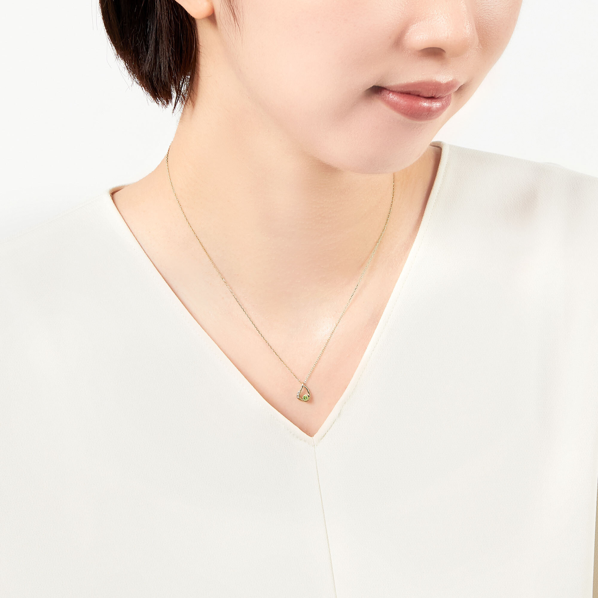 ふっくらとボリューム感のある地金と繊細に輝くダイヤモンドがさわやかなペリドットを引き立て、可愛らしくも上質な雰囲気に。