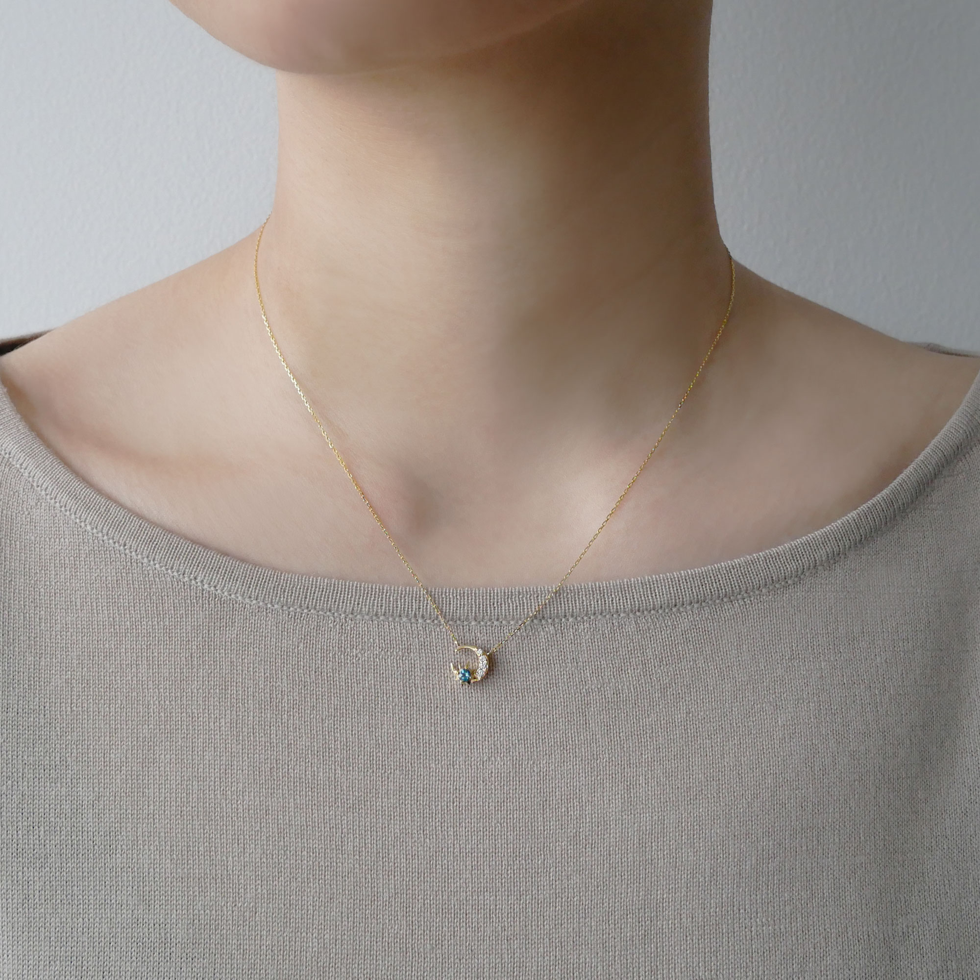 ブルートパーズの神秘的な輝きに吸い込まれそうなネックレス。