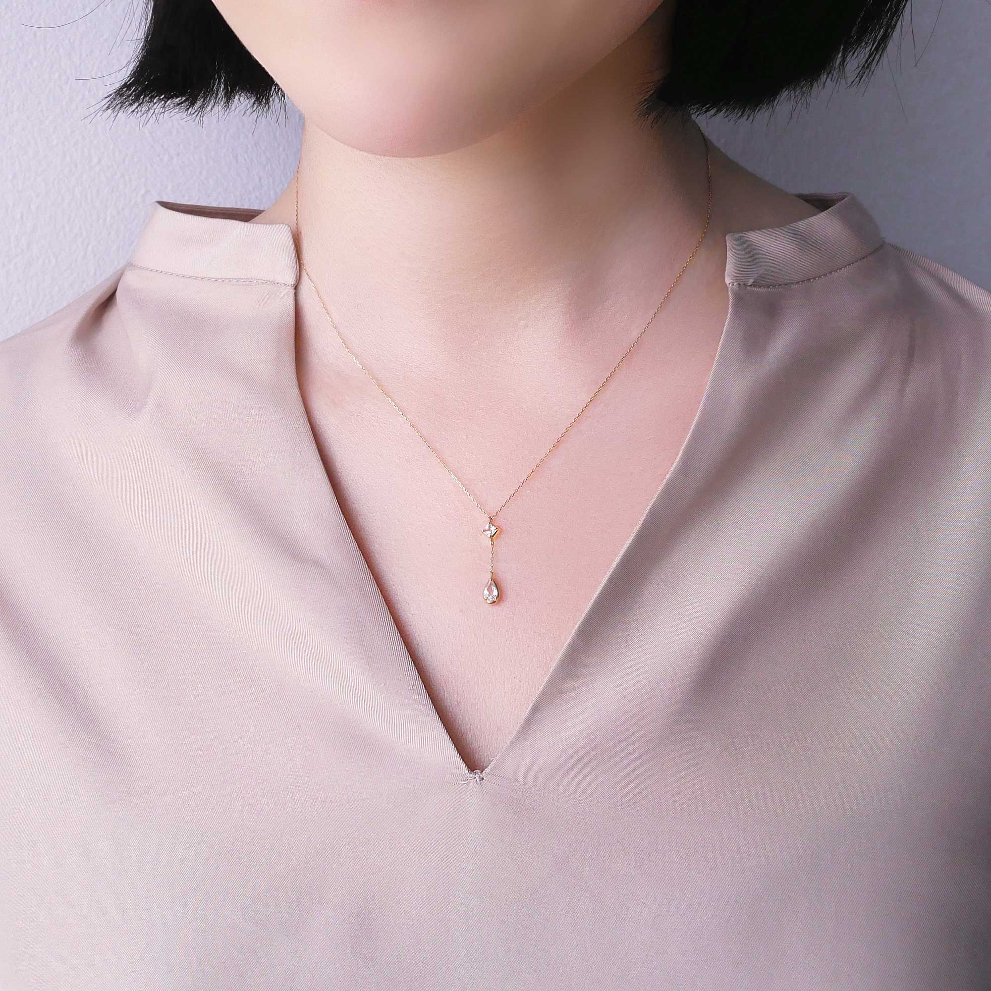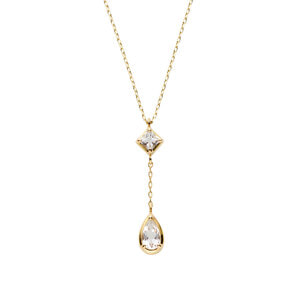 艶めくイエローゴールドに、透明感が美しいクォーツが明るく華やかな印象を与えるネックレス。
