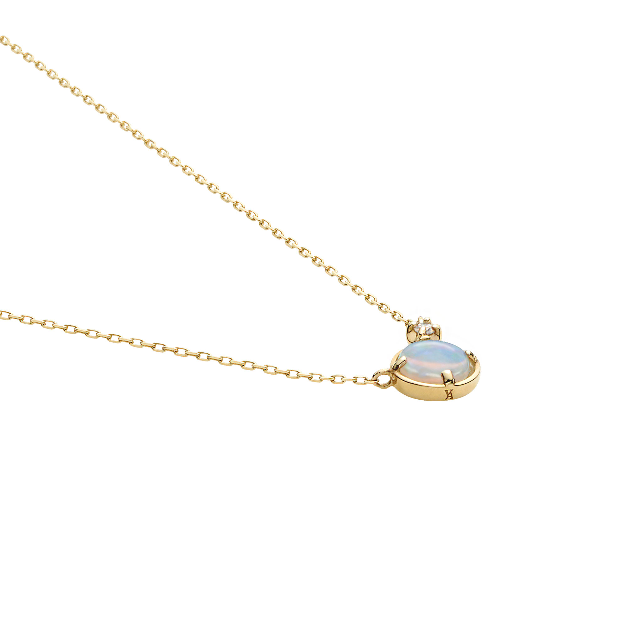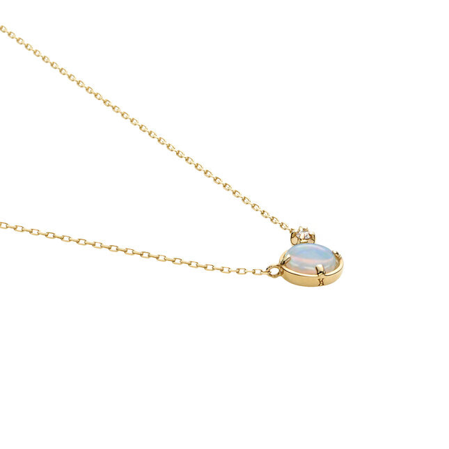うつろう光が美しいオパールの隣で、繊細にきらめくダイヤモンドがドラマチックな華やかさを添え、胸元を魅力的に演出します。
