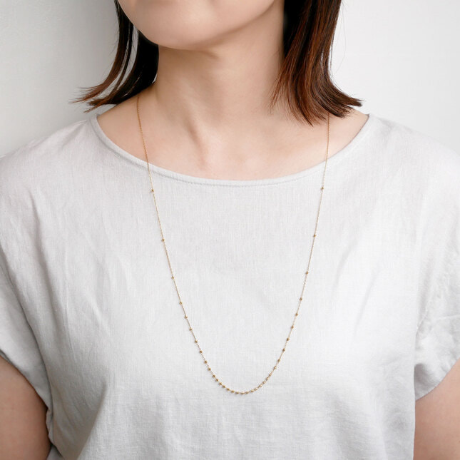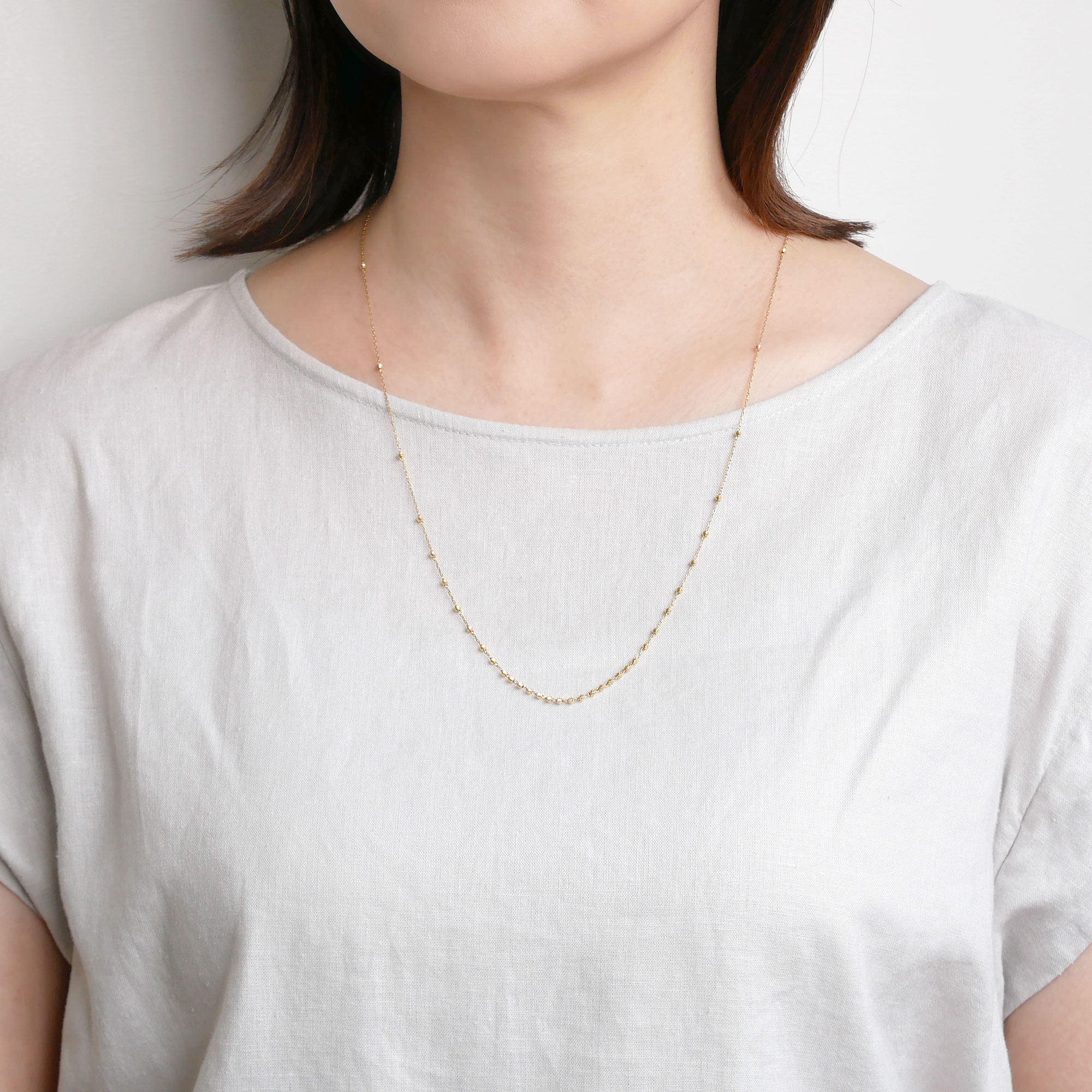 グラデーションに配されたカットボールが、繊細に輝くチェーンネックレス。