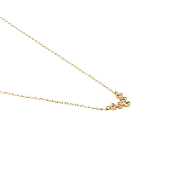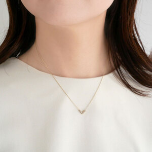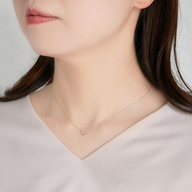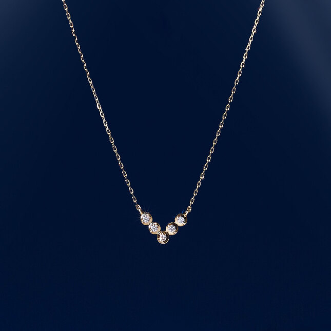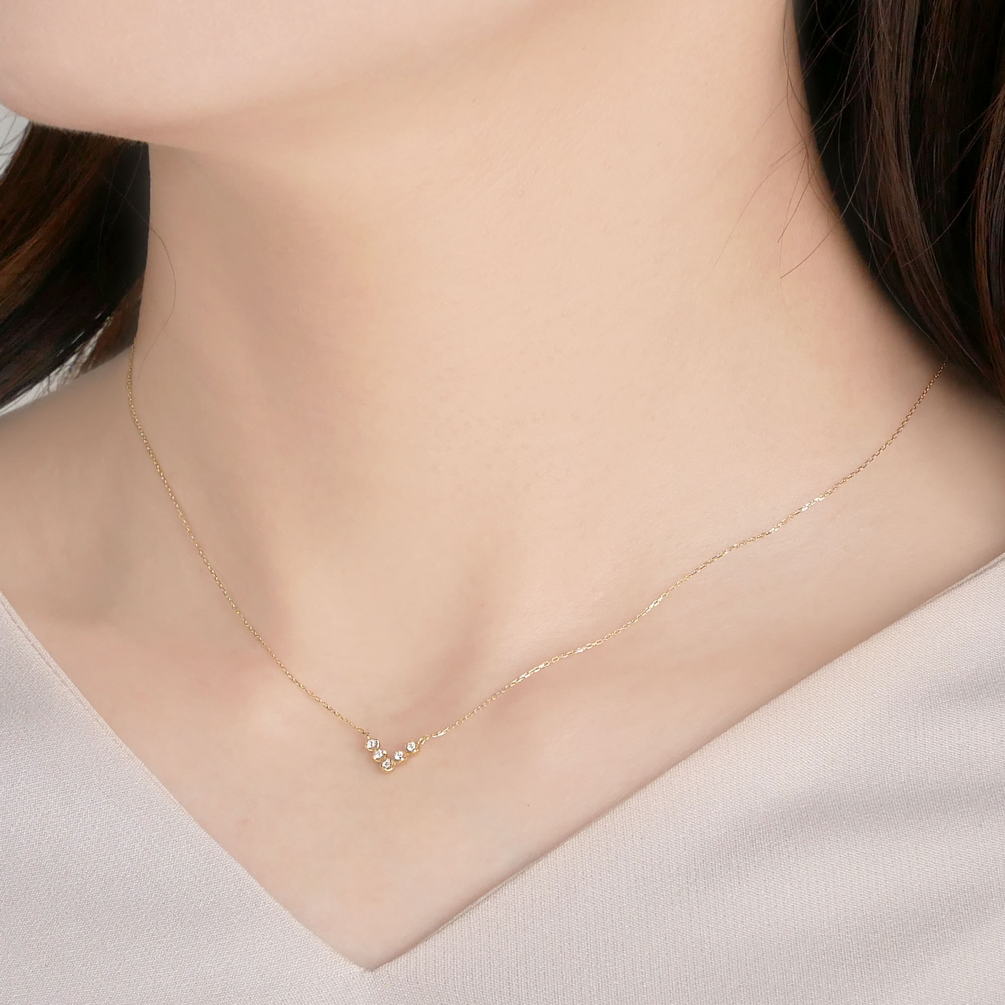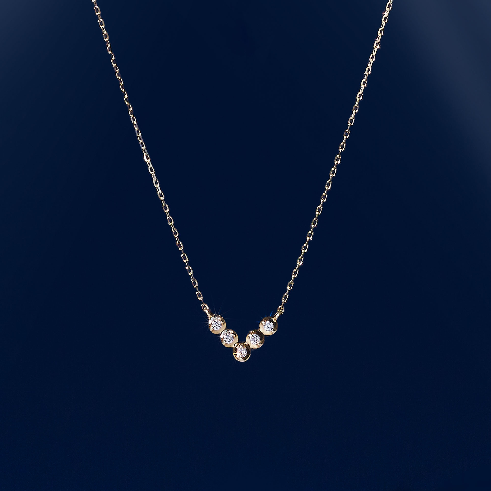 Vのフォルムに5石のダイヤモンドが繊細にきらめくネックレス。