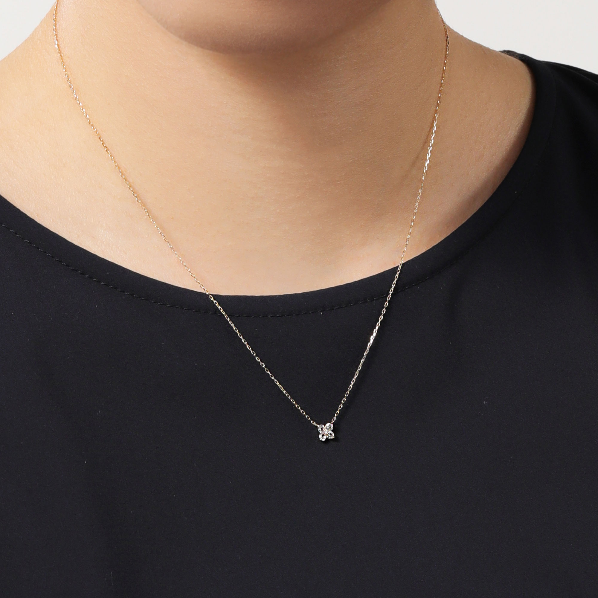 瑞々しい花びらを、うるうると輝くホワイトトパーズの透明感で表現した、フェミニンで柔らかい表情のネックレス。