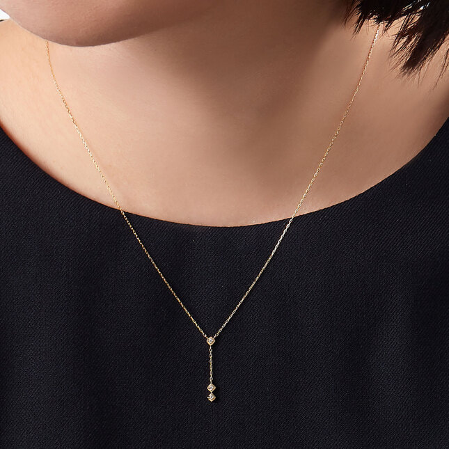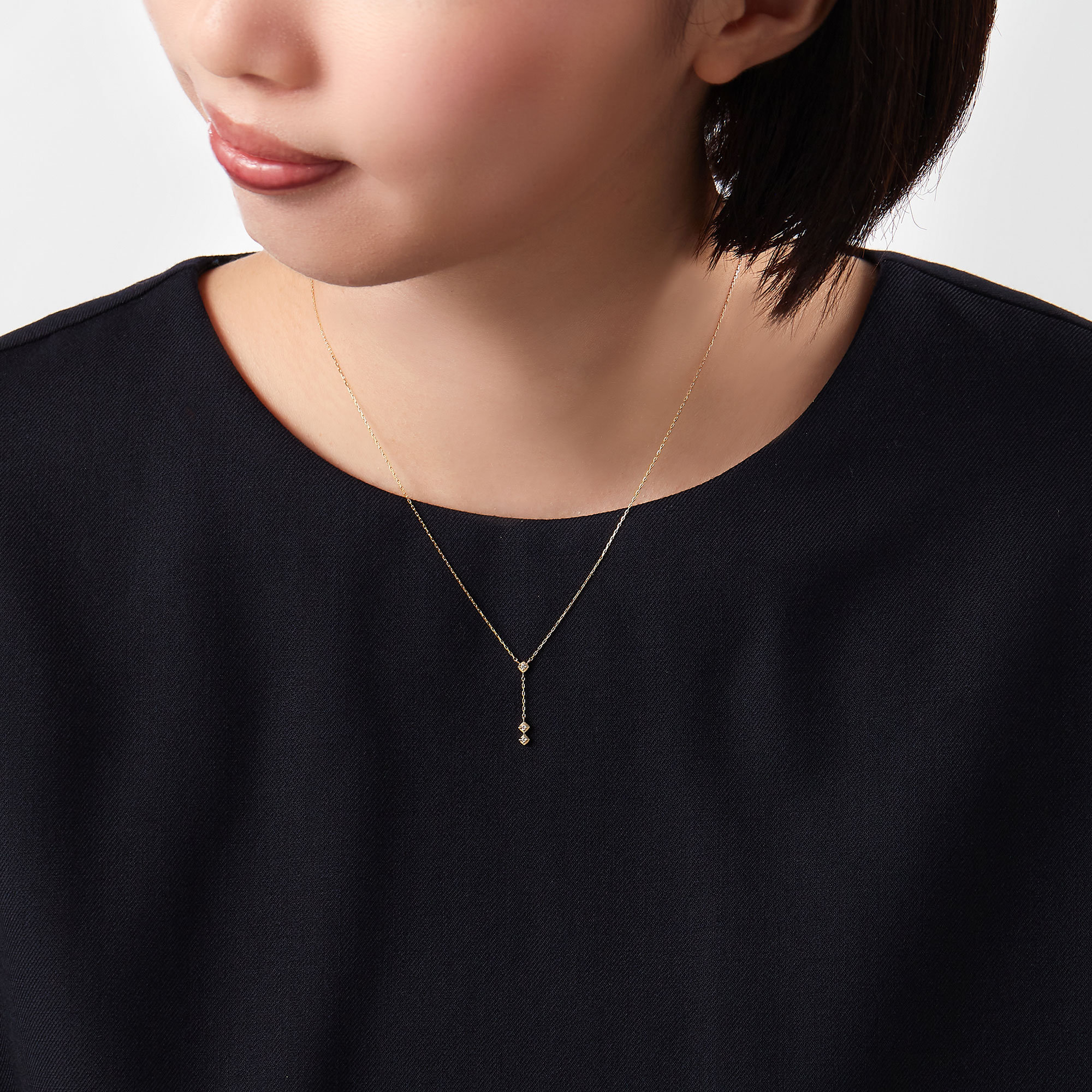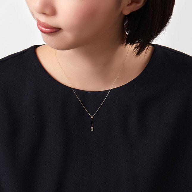 Y字のフォルムがデコルテにモダンな輝きをプラスするネックレス。