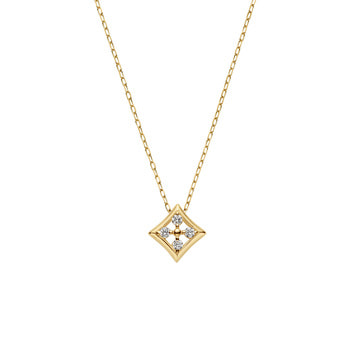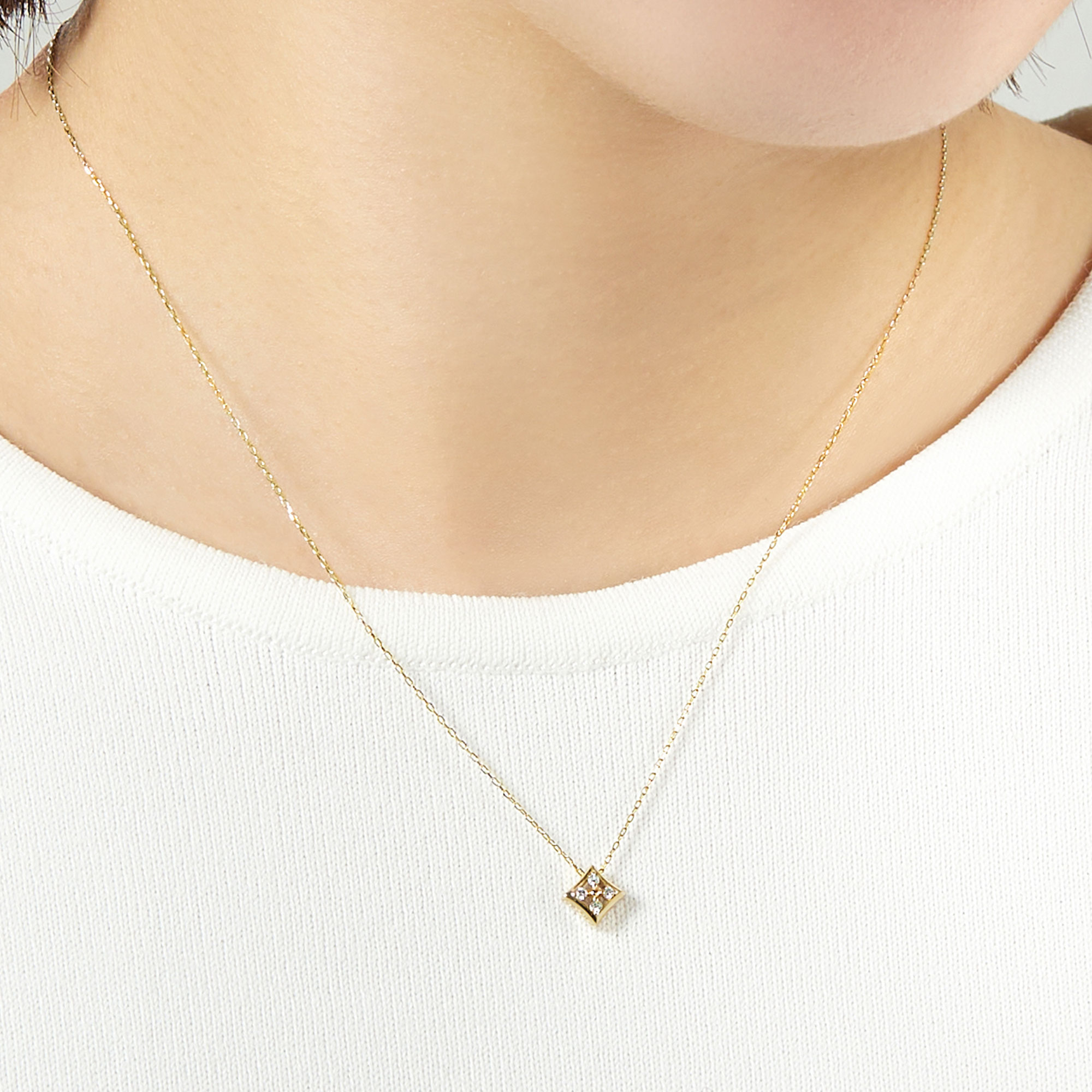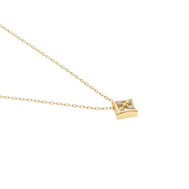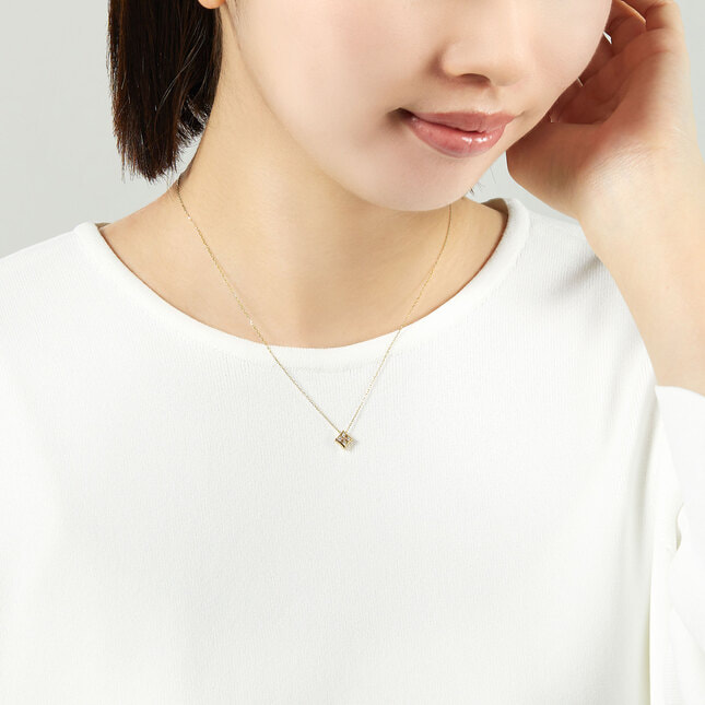 艶やかなゴールドの中にあしらった4石のダイヤモンドが、胸元に上品で明るい表情をプラスします。