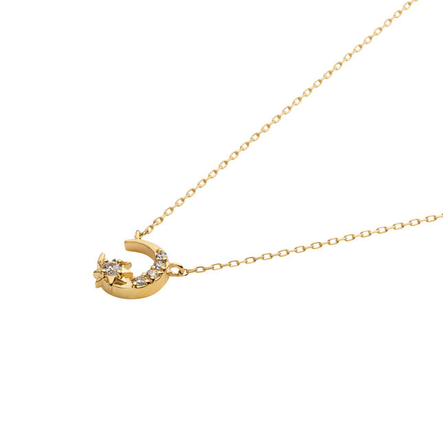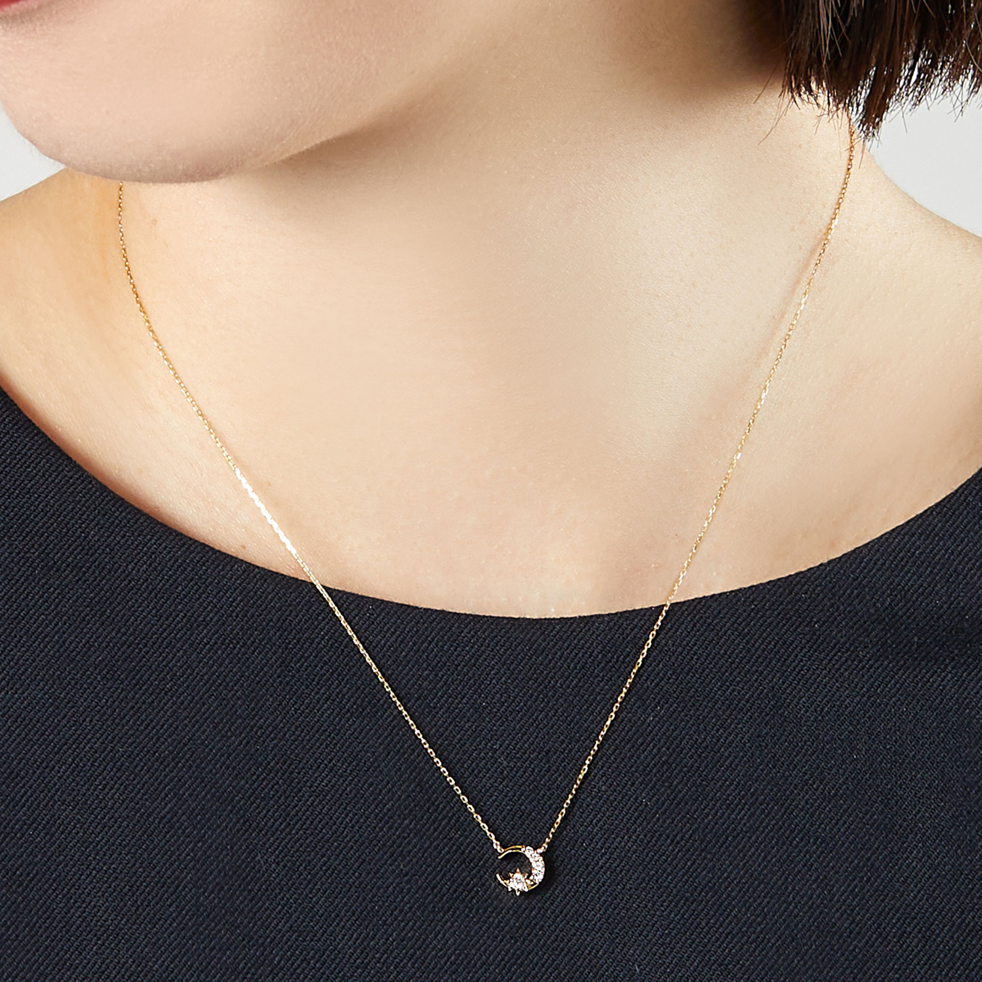 三日月と星をモチーフにしたロマンティックな印象のネックレス。
