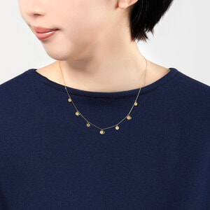 単品使いは勿論、お手持ちのネックレスをレイヤードすれば、一層華やかな胸元に。
