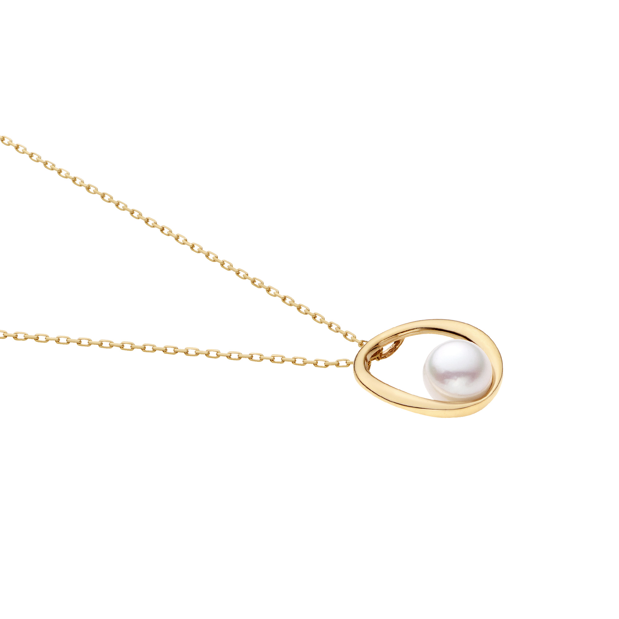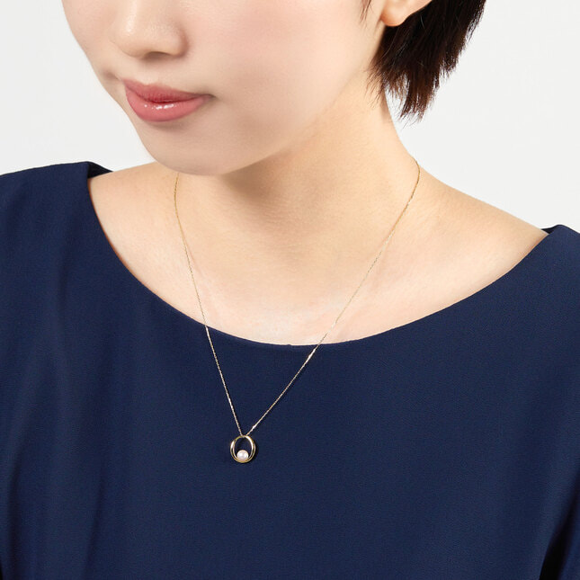 ゆるやかにカーブしたフォルムとアコヤパールのまろやかな光沢が響き合い、優しい雰囲気を纏わせます。