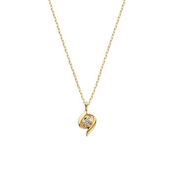 艶やかなイエローゴールドに一粒のダイヤモンドをあしらったネックレス。