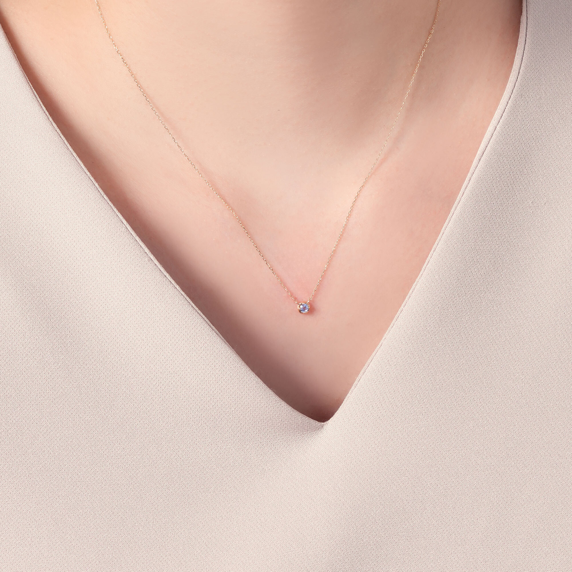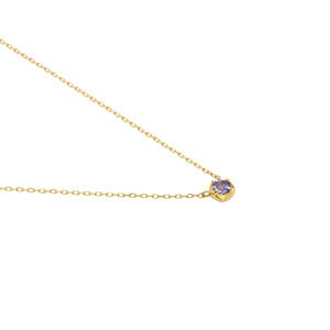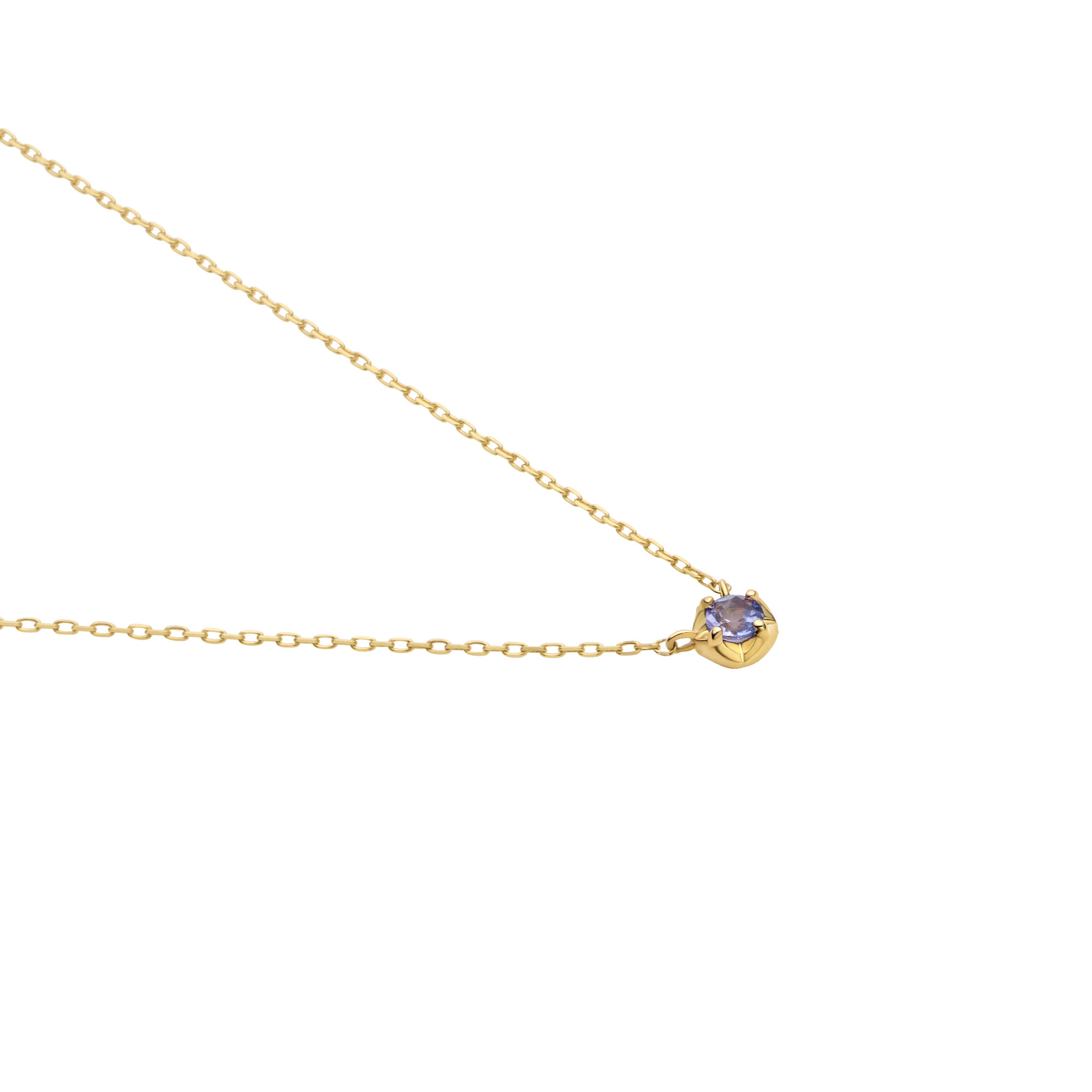 美しく神秘的なパープルブルーのタンザナイトをイエローゴールドで取り巻いた、さりげなくエレガントなデザインのネックレス。