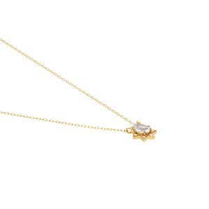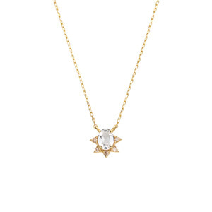光を放つ太陽のようなフォルムが明るい表情をたたえるネックレス。