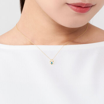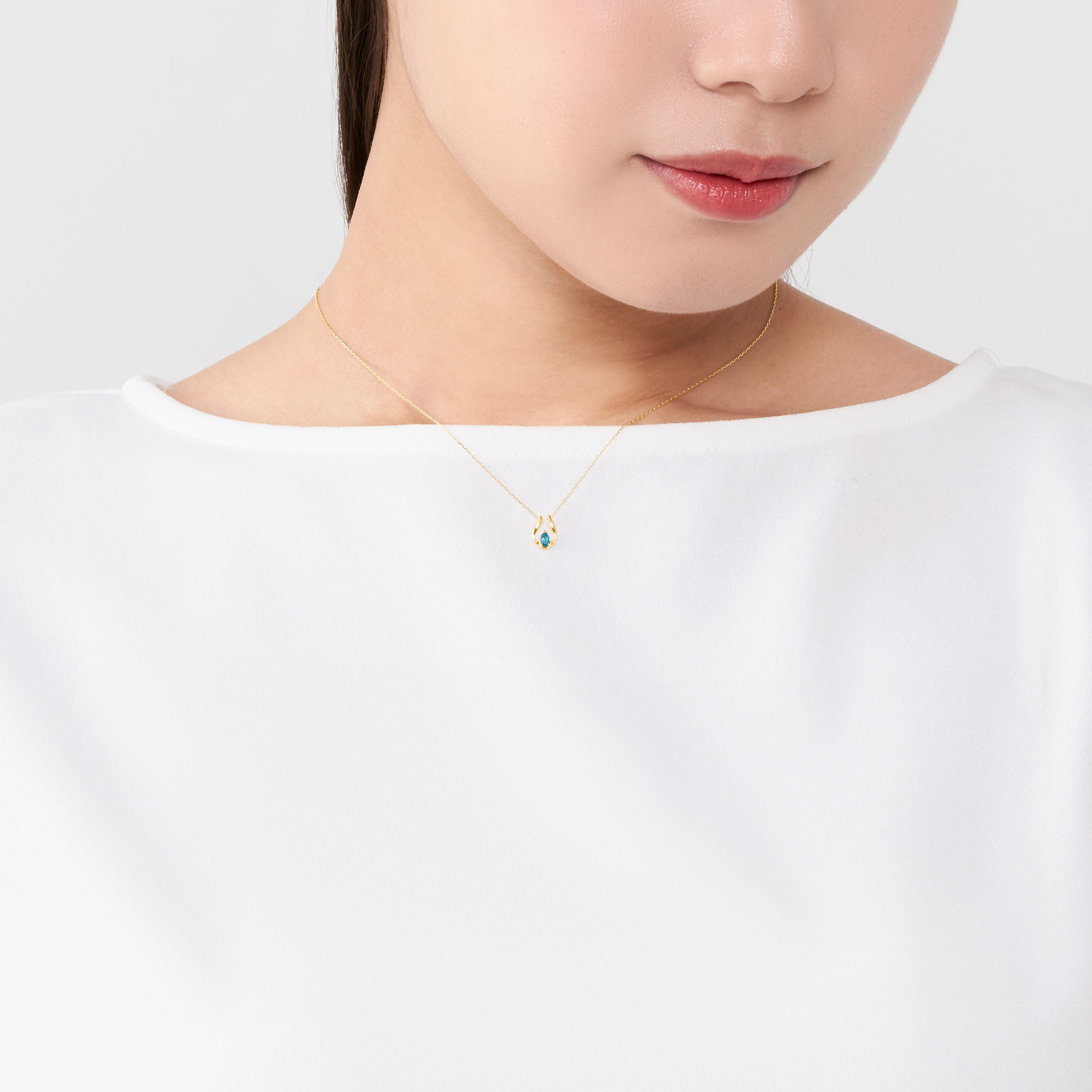 イエローゴールドの美しい艶感と、ロンドンブルートパーズの鮮やかな色味が印象的なネックレス。