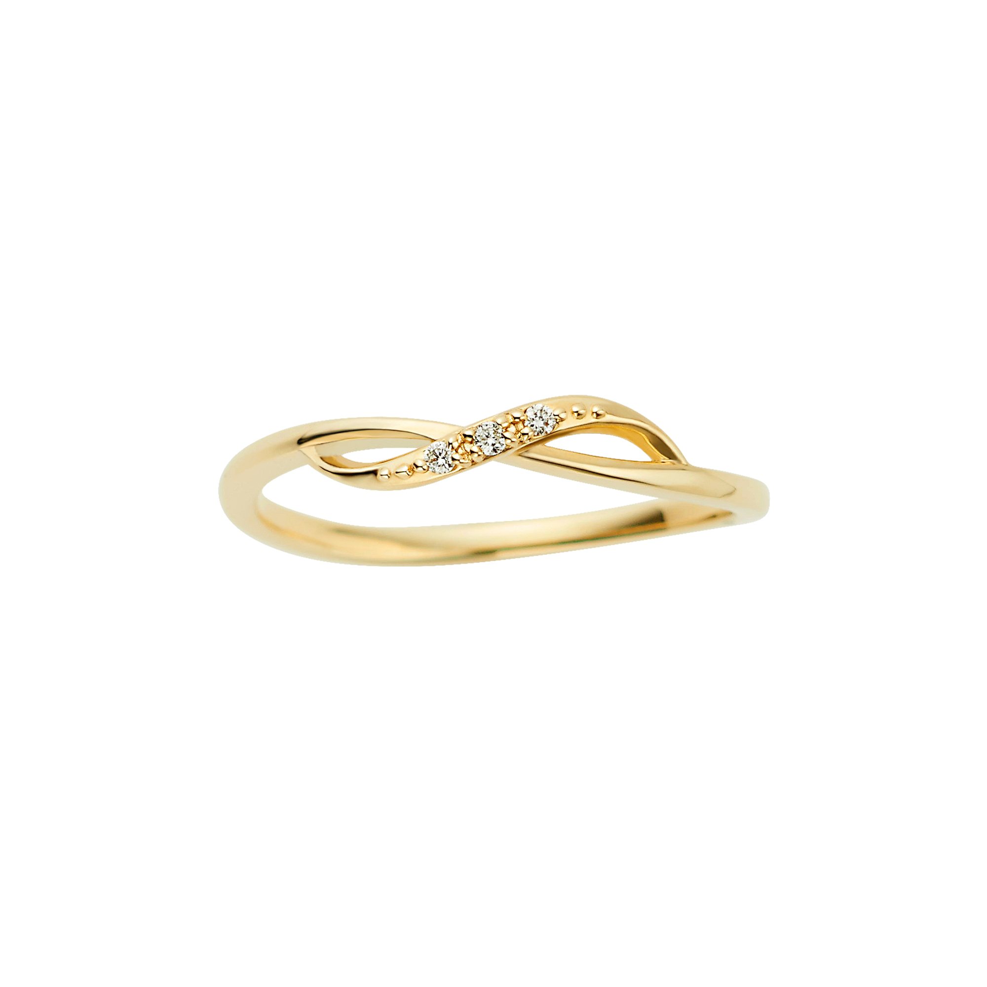 イエローゴールドの流れるようなラインが美しいリング。