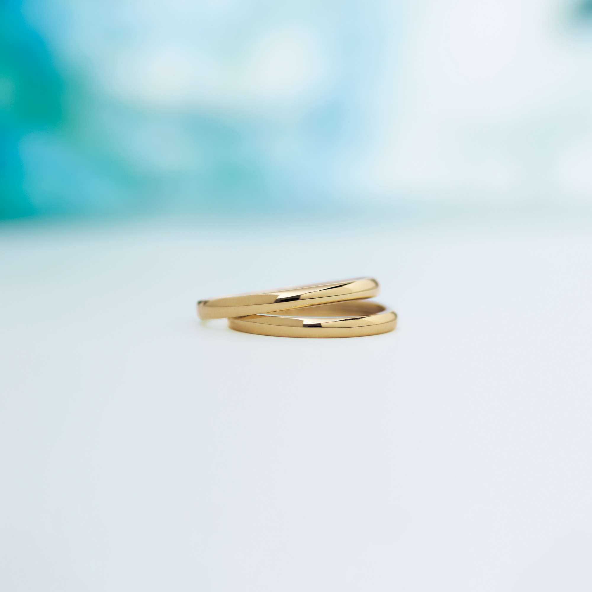 すっきりとしたデザインで日常のどんなスタイルにも合せやすく、イエローゴールドの上質さが際立つリング。