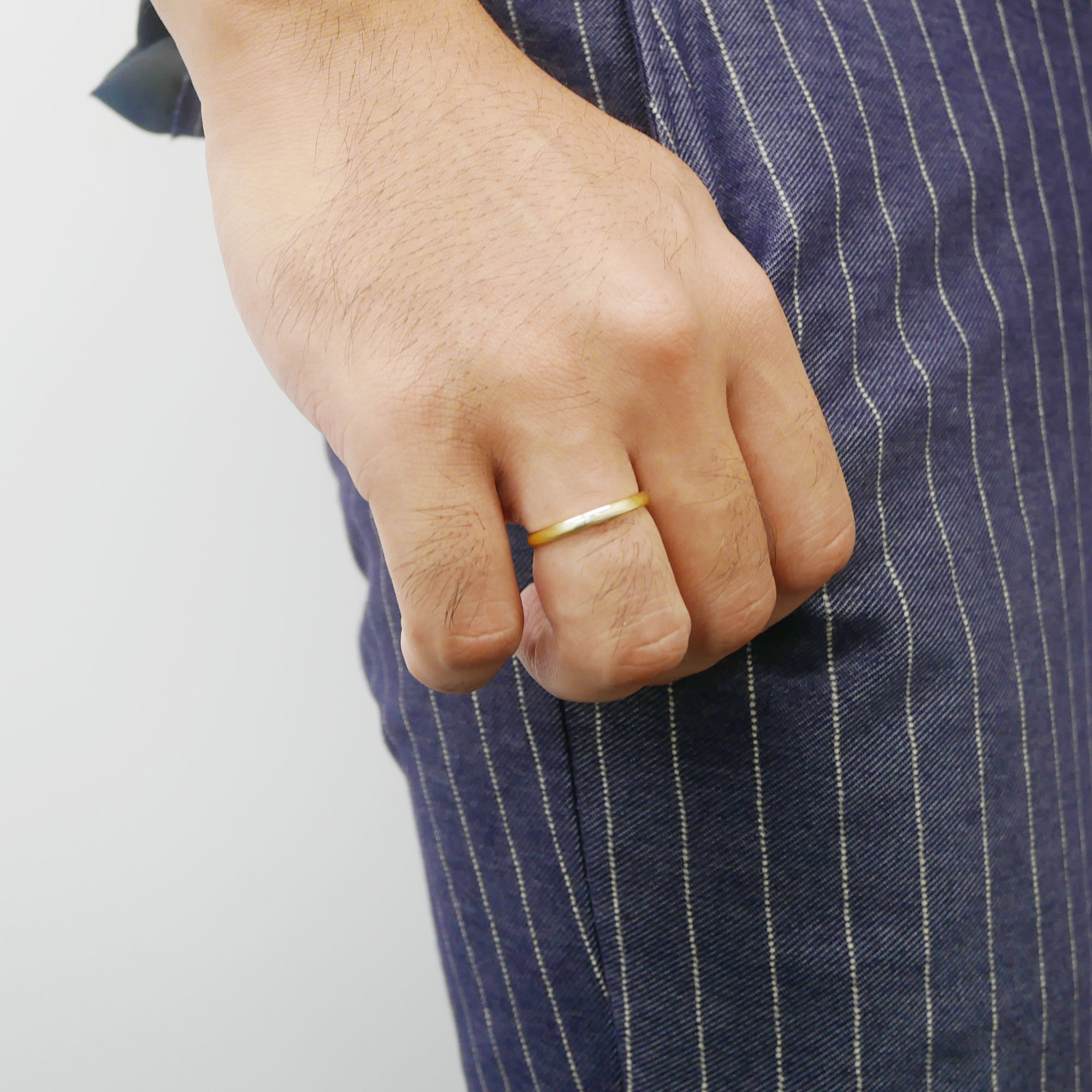 程よい幅をもたせた地金のみのリングは指になじむような仕上がりで普段使いとしてもおすすめです。