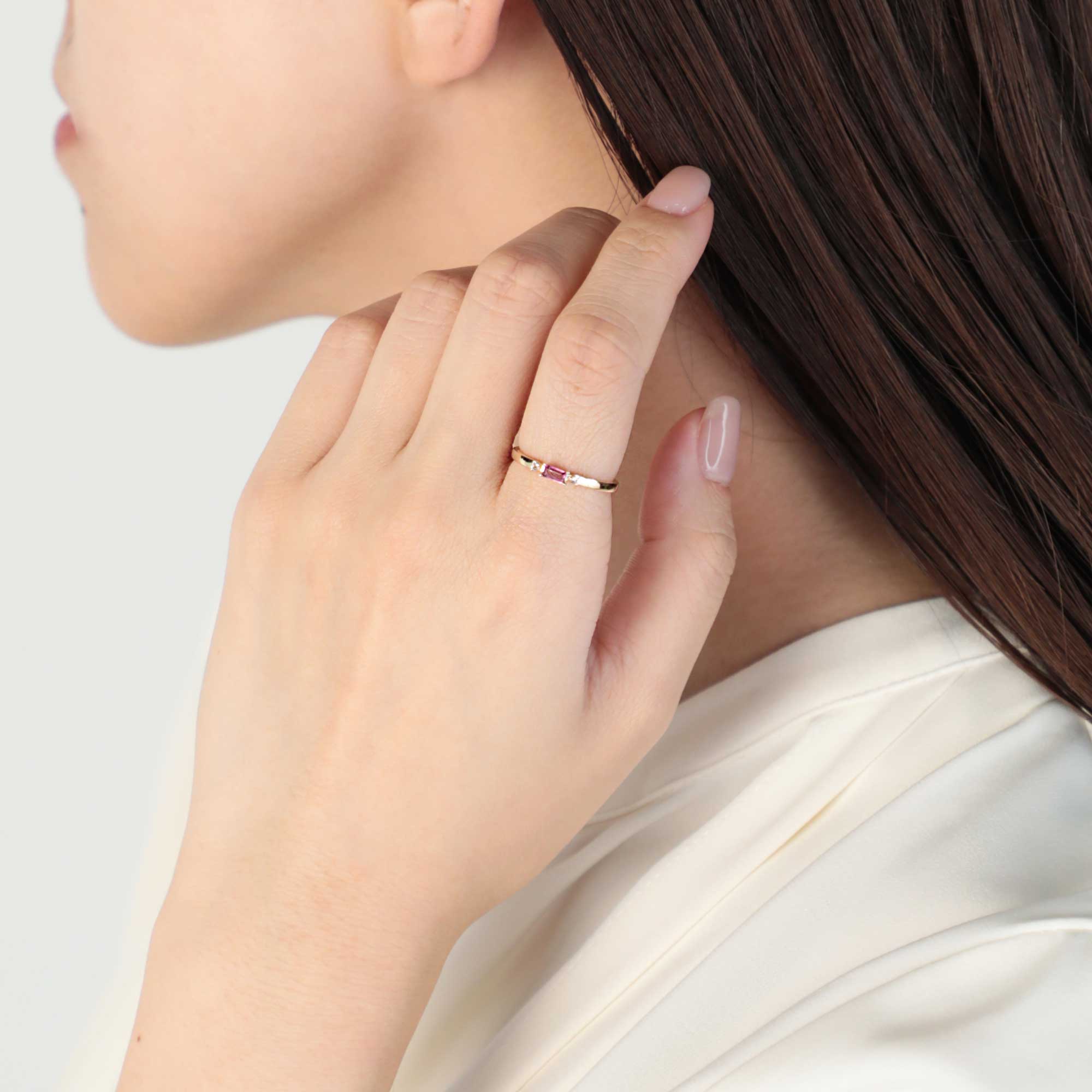 ガーネットの深みのある赤紫色が手元に穏やかな雰囲気をもたらします。バケットカットはカット面が大きく少ないため、落ち着きのある透明感が特徴です。