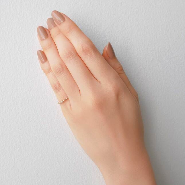 イエローゴールドの小さな粒が光を集めるピンキーリング。