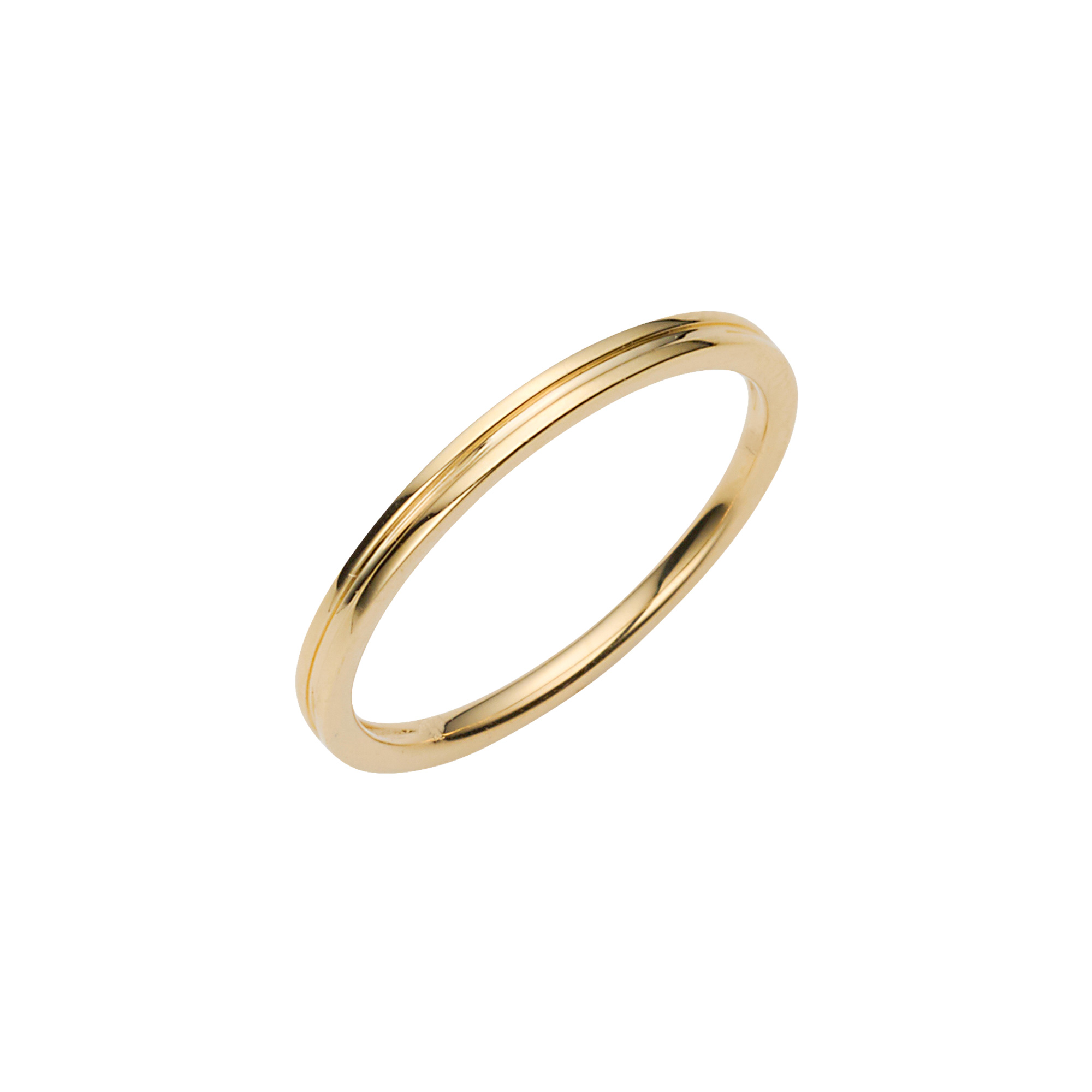 中央に引かれたラインが陰影を生み、シンプルなゴールドに表情を与えます。