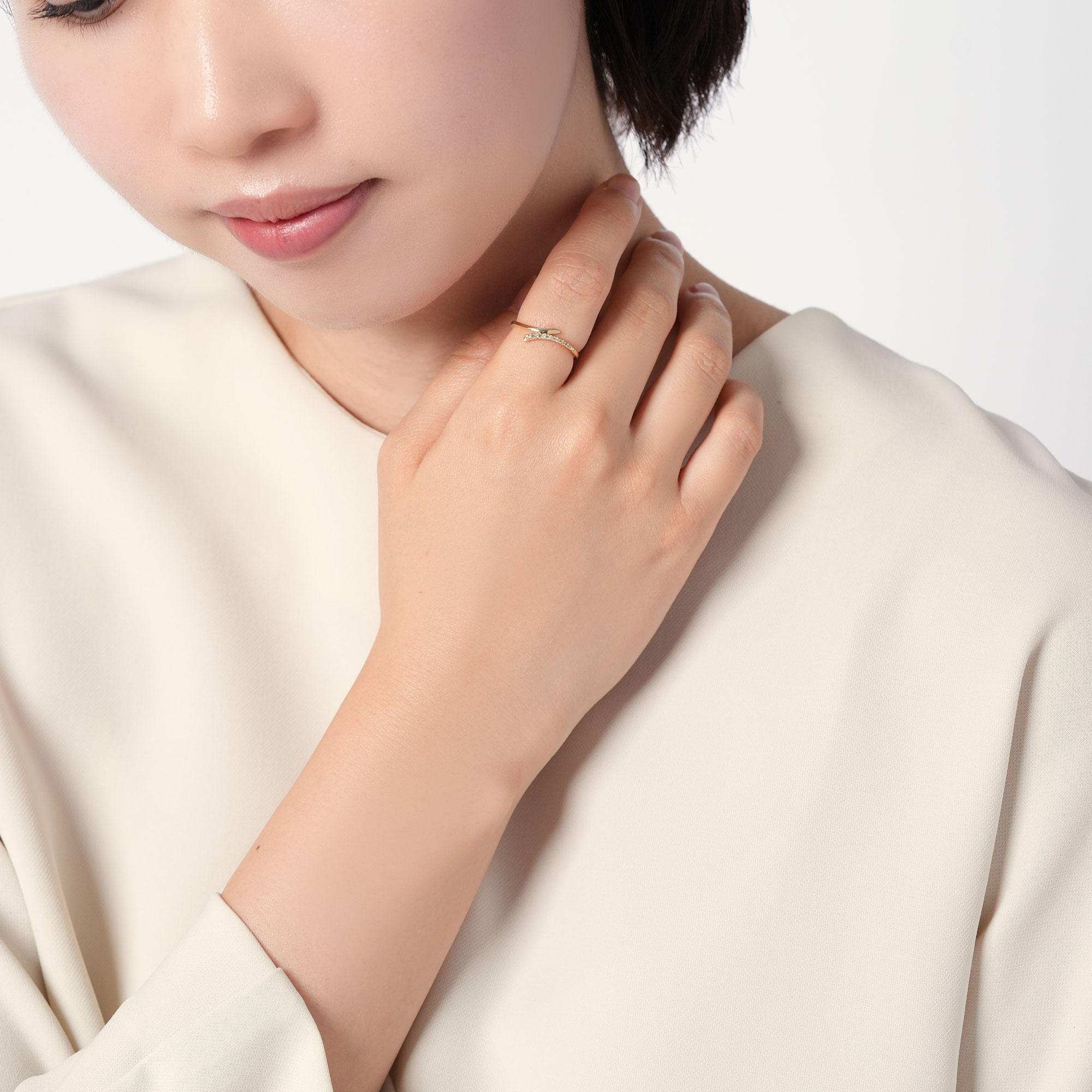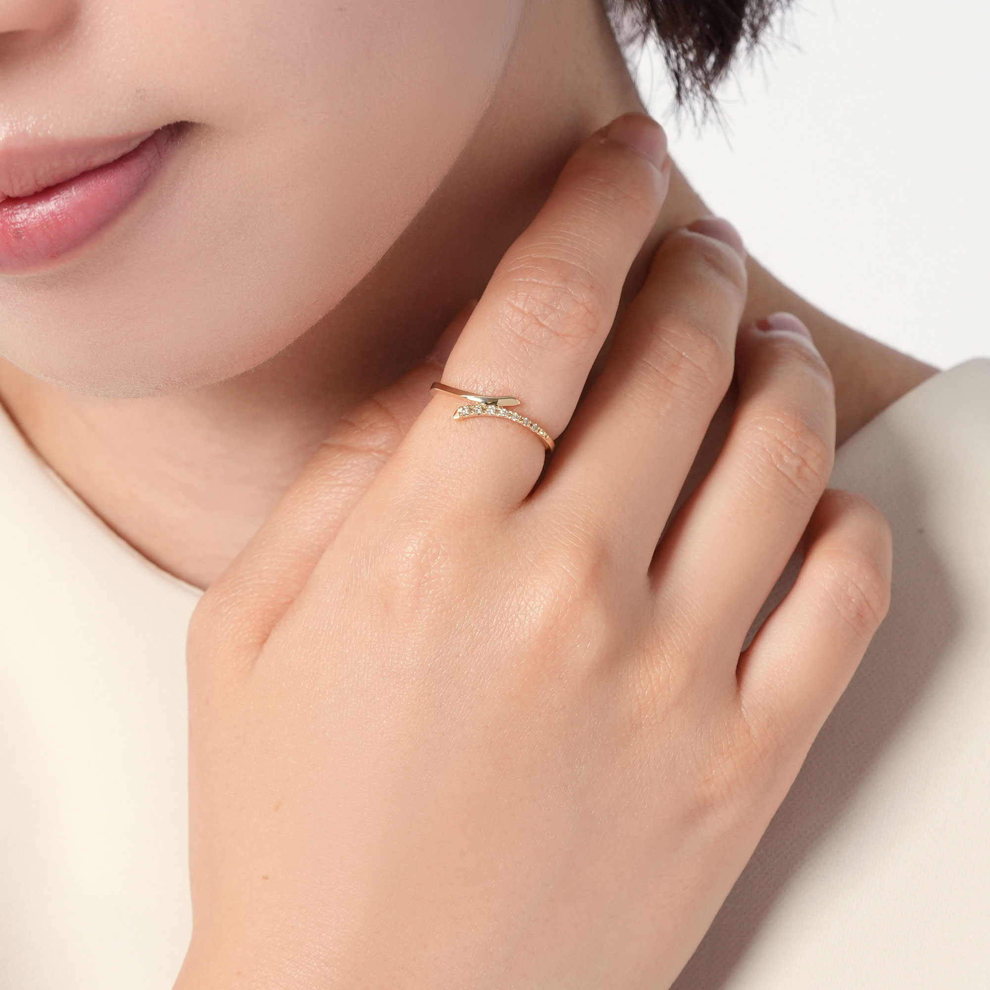 温かみのあるイエローゴールドと落ち着いたブラウンダイヤモンドの輝きが、手元にニュアンスのあるきらめきをもたらすリング。