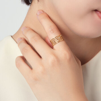 5本のラインと散りばめられたダイヤモンドがきらめきをそえるリング。