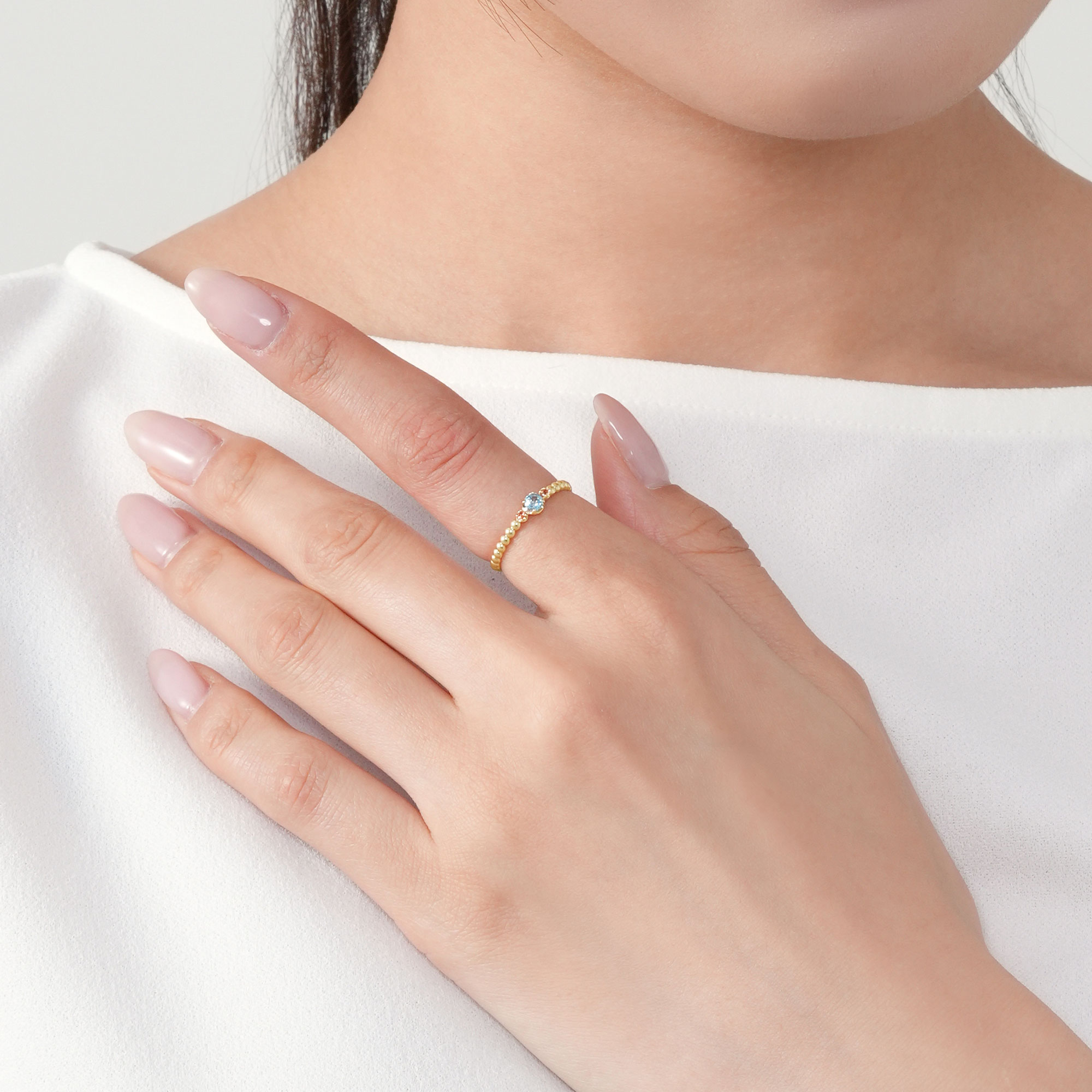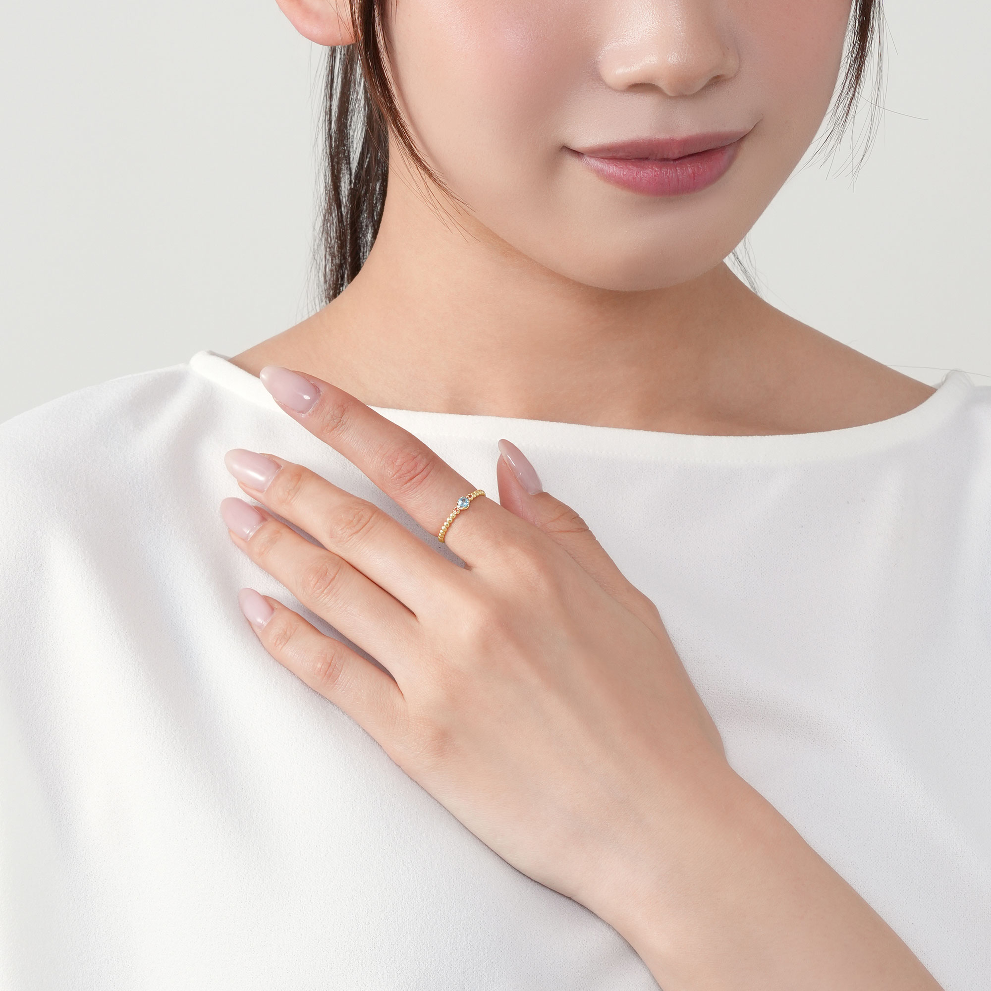 アームに美しく並べられたイエローゴールドの粒は職人の手によって一つ一つ丁寧に磨かれ、どの角度から見ても繊細に光り輝きます。