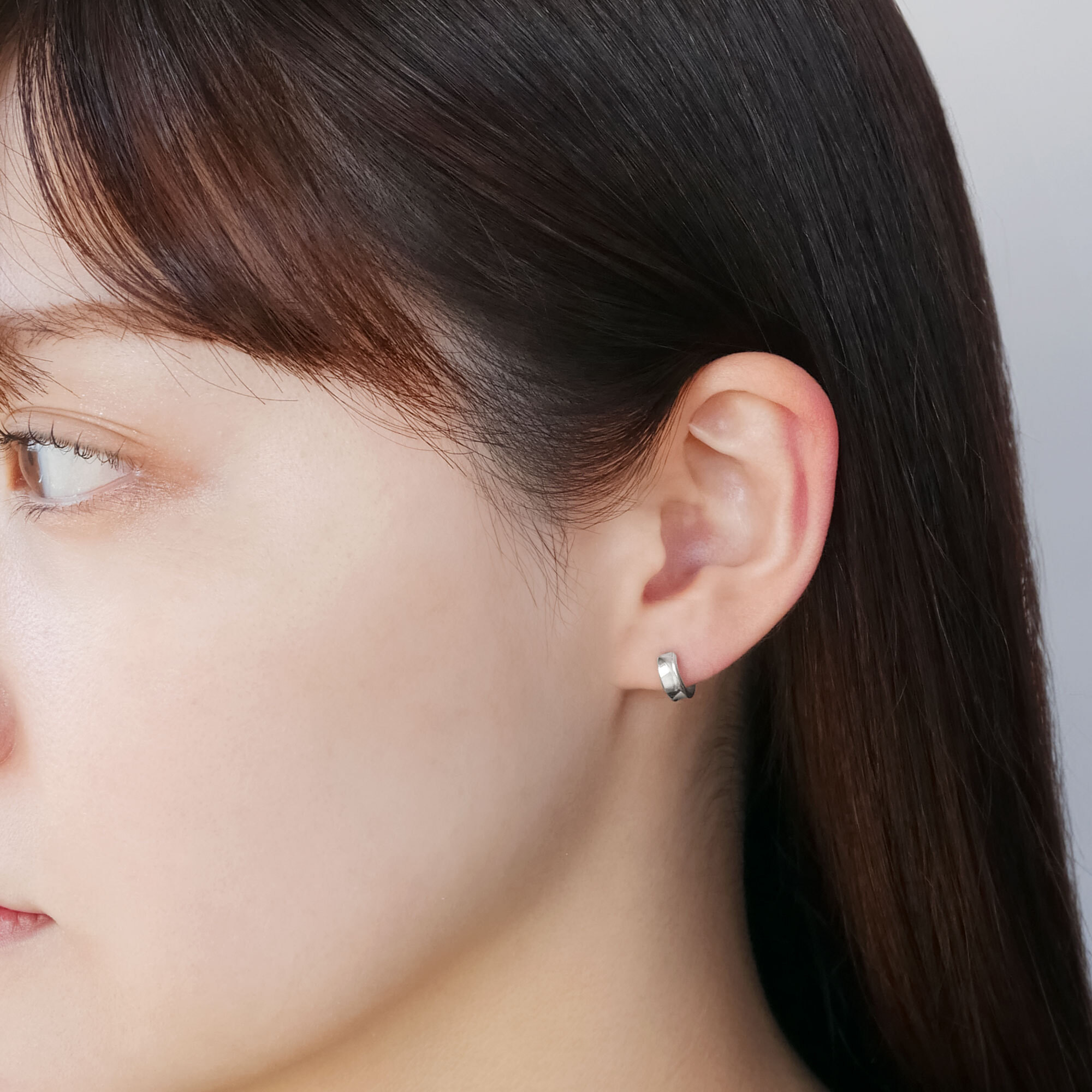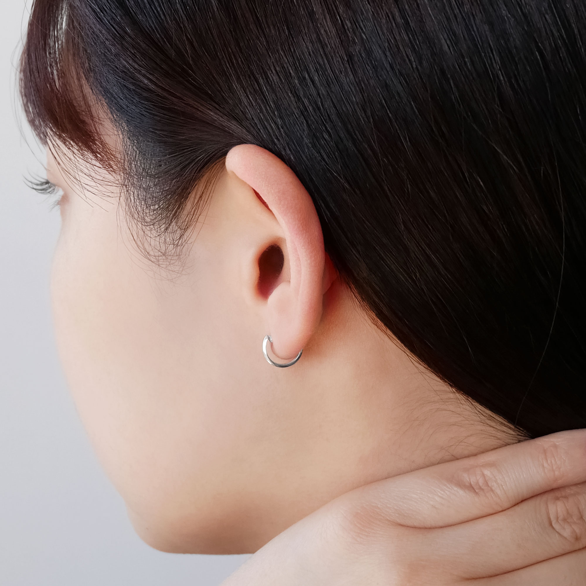 プラチナのツヤ感が美しいプチサイズのフープピアス。