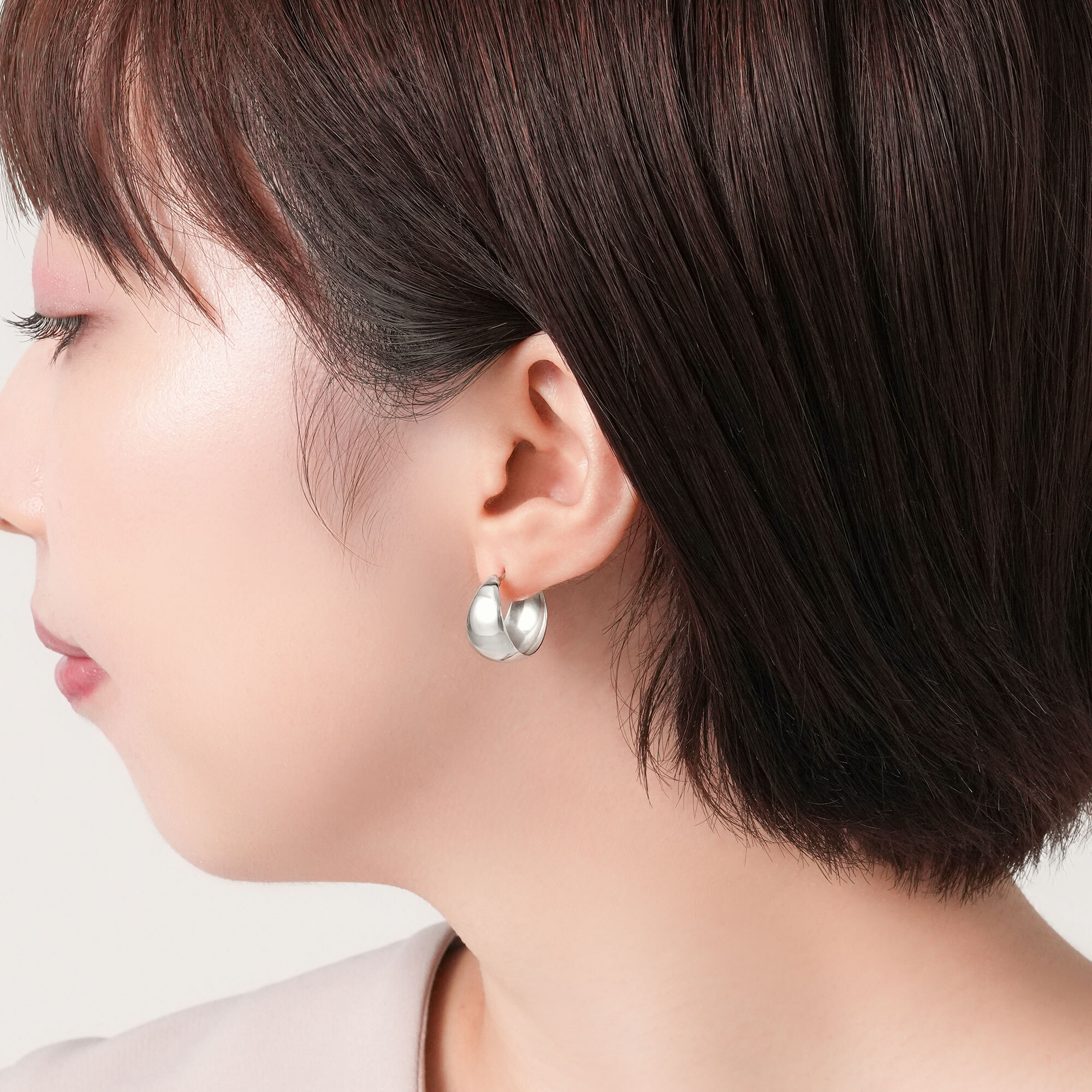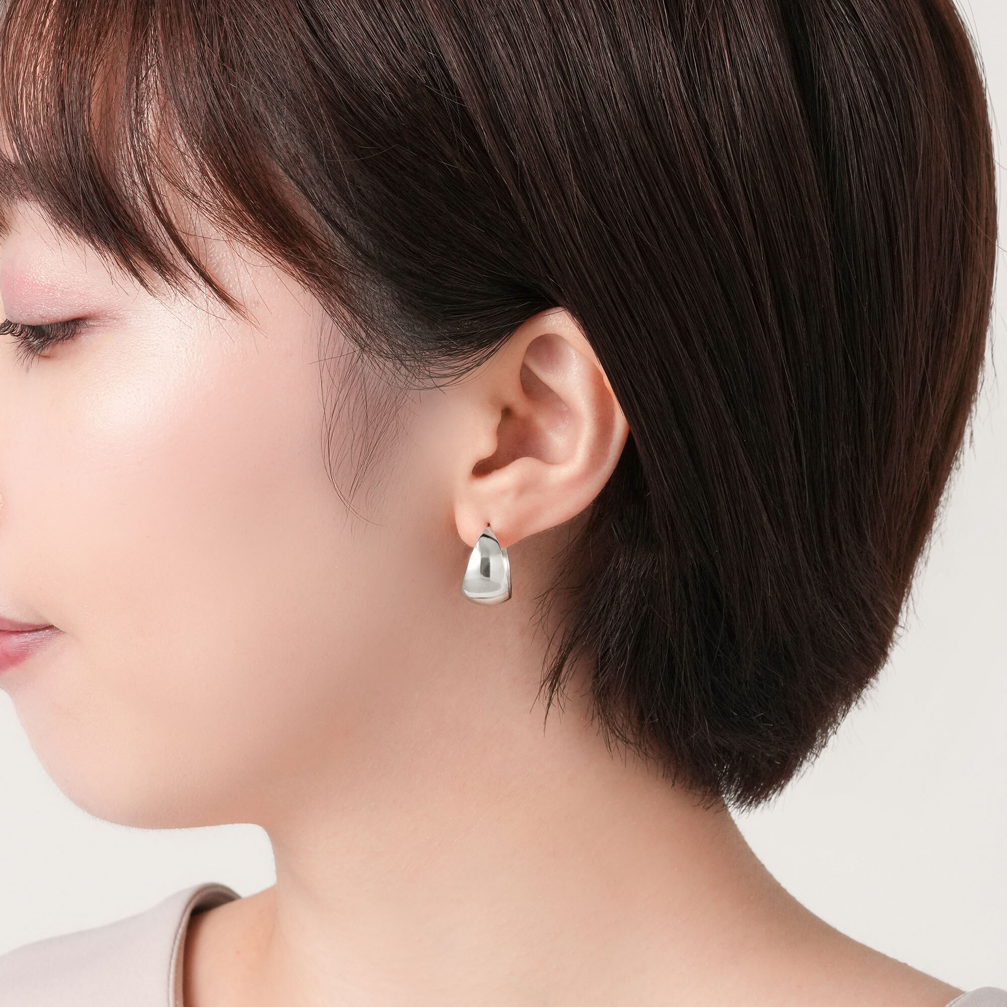 ふっくらとした丸みとプラチナの艶感が美しいピアス。