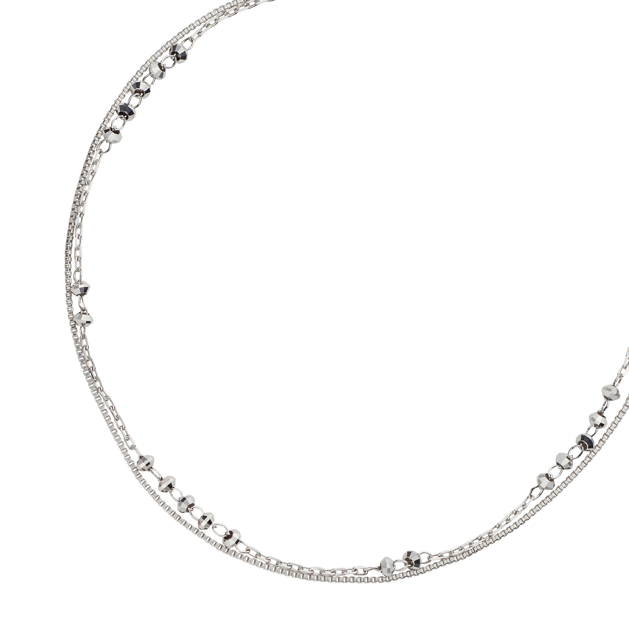 キラキラとしたパーツがリズミカルに並んだチェーンと、プラチナの奥深い光沢が美しい艶めきのチェーン。